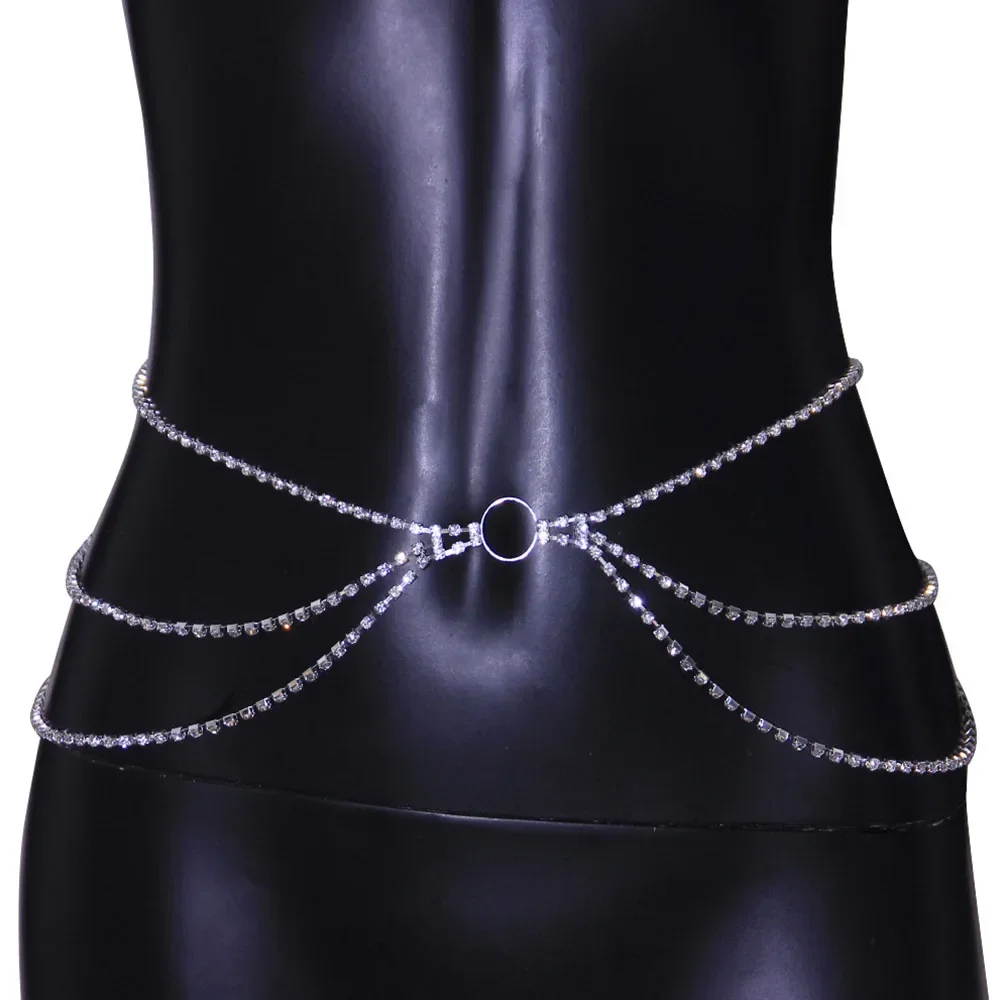 Shine 2024 Fashion Three Layer Rhinestone Waist Chain for Women Circle Beach Bikini Waist Belly Sexy Body Chain Jewelry