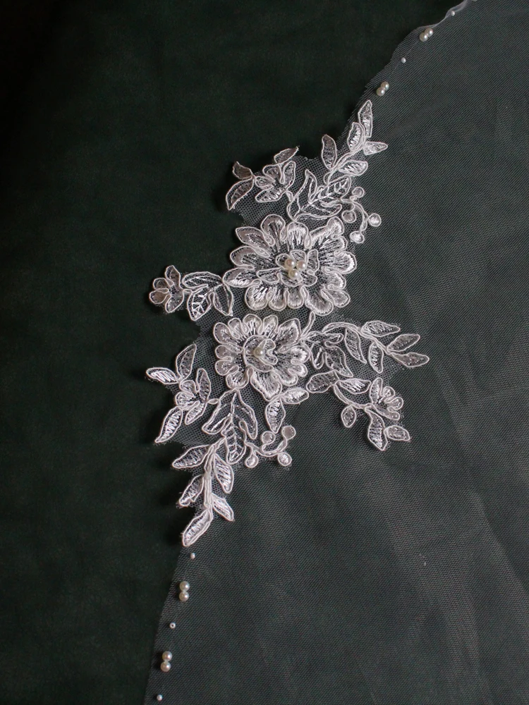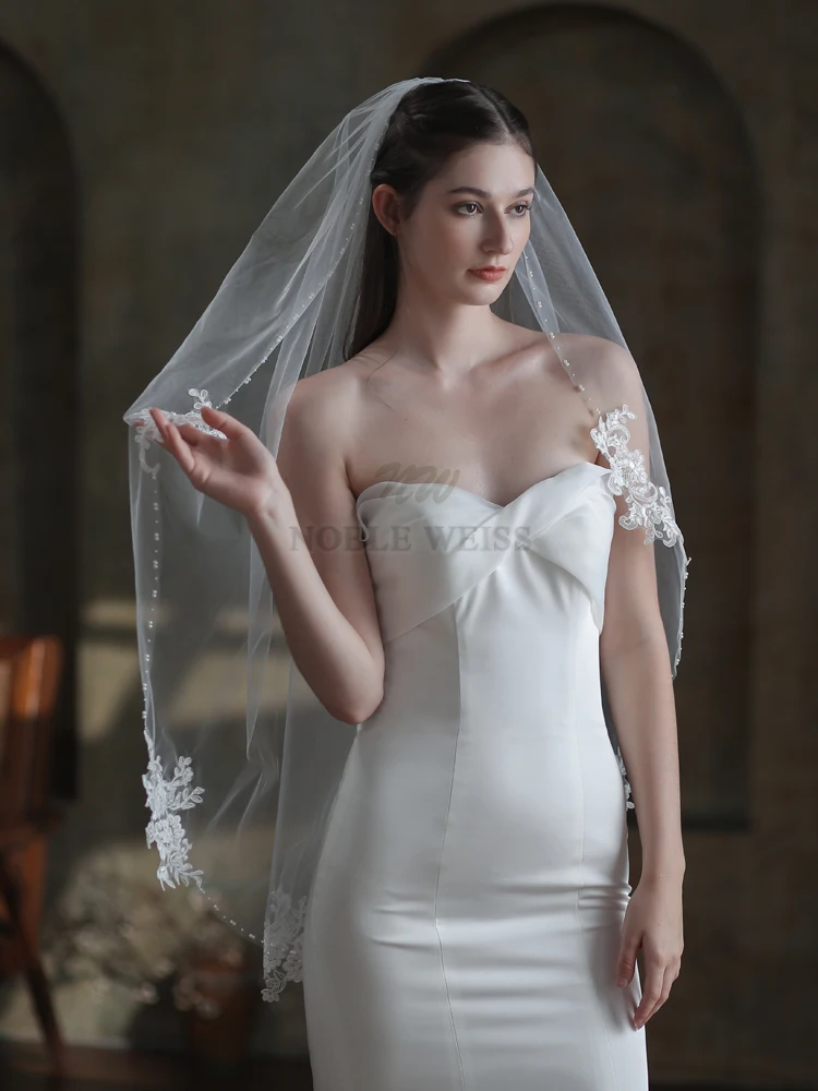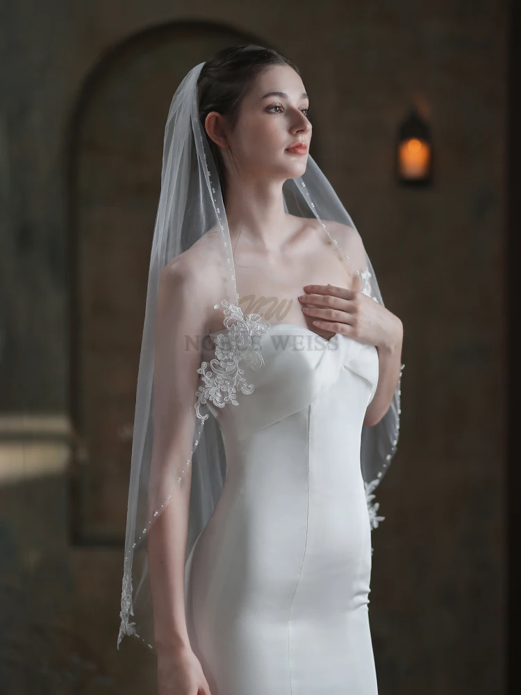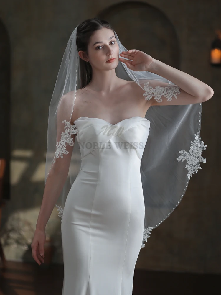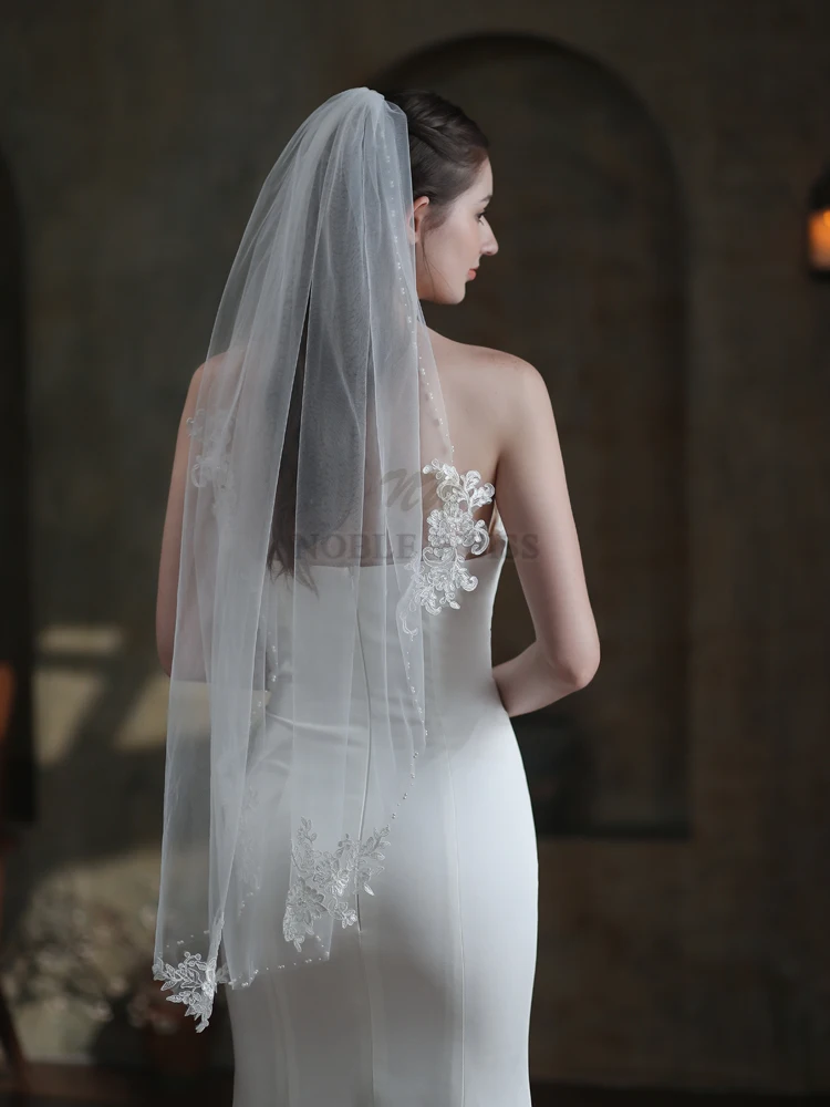 Short 1T Appliques Wedding Veil With Comb Pearls Edge Bridal Veils Wedding Accessories Customized