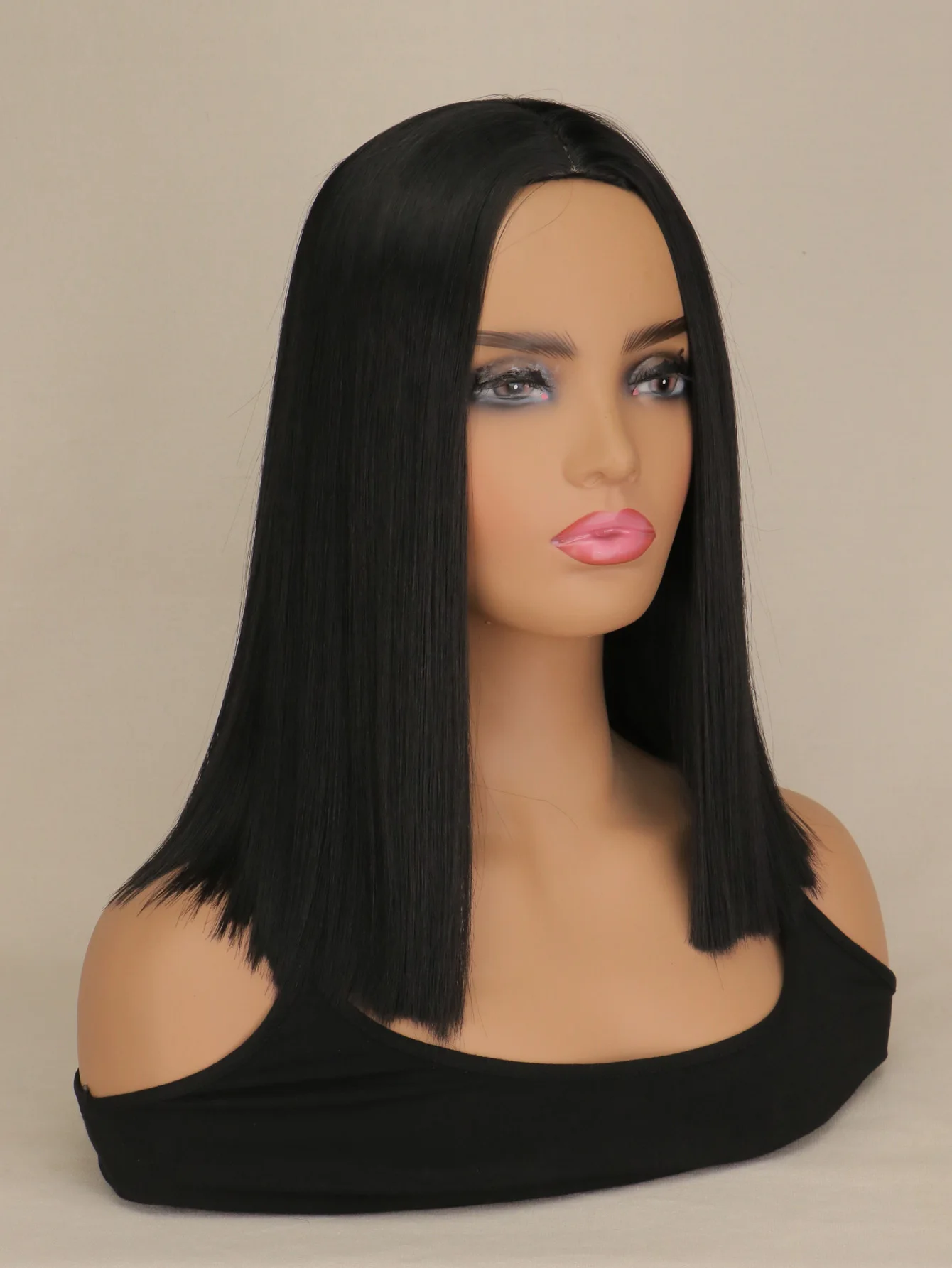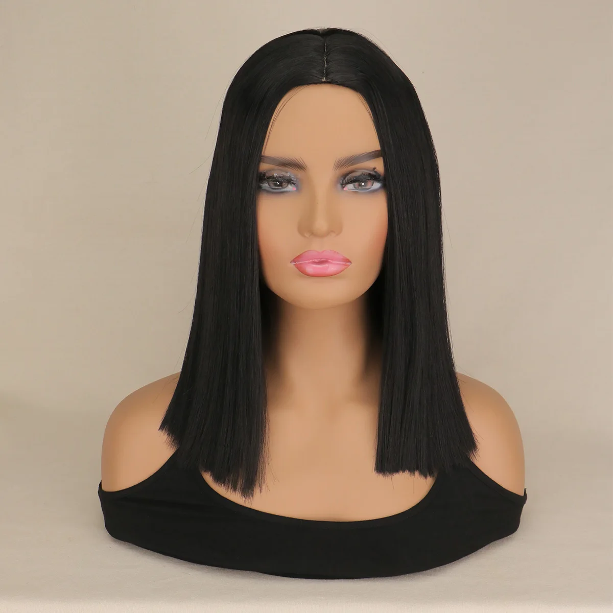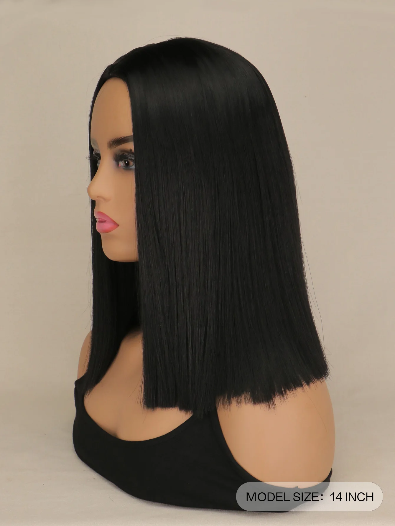 Short Bob Synthetic hair Wig For Women Natural Hair Wigs Cosplay Party Middle Part Black 14 inch