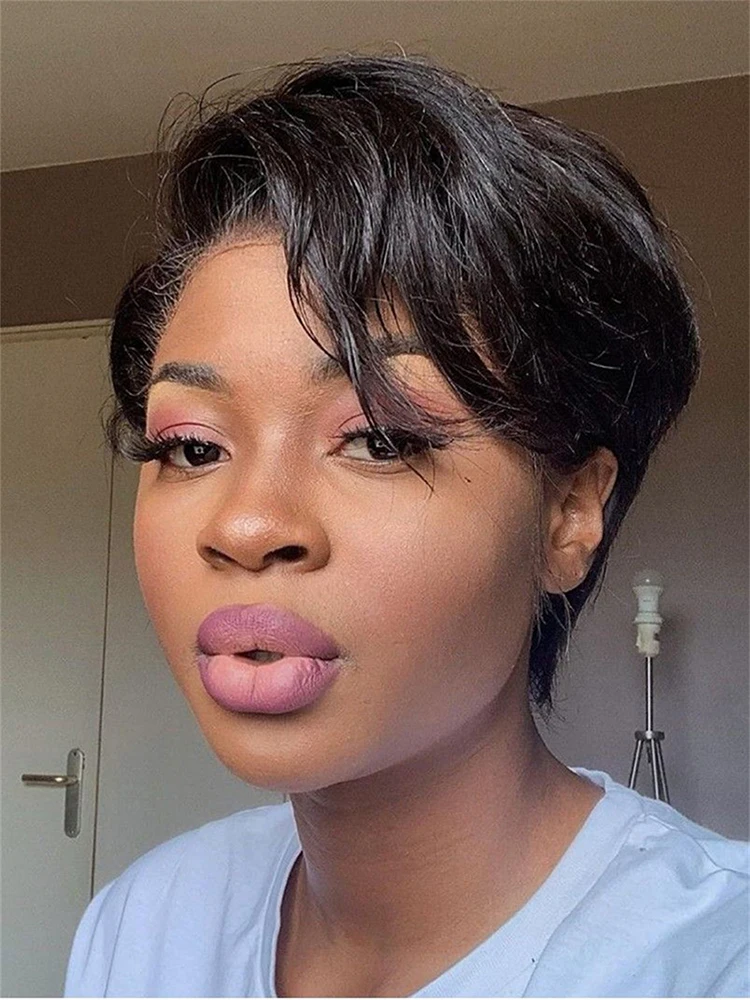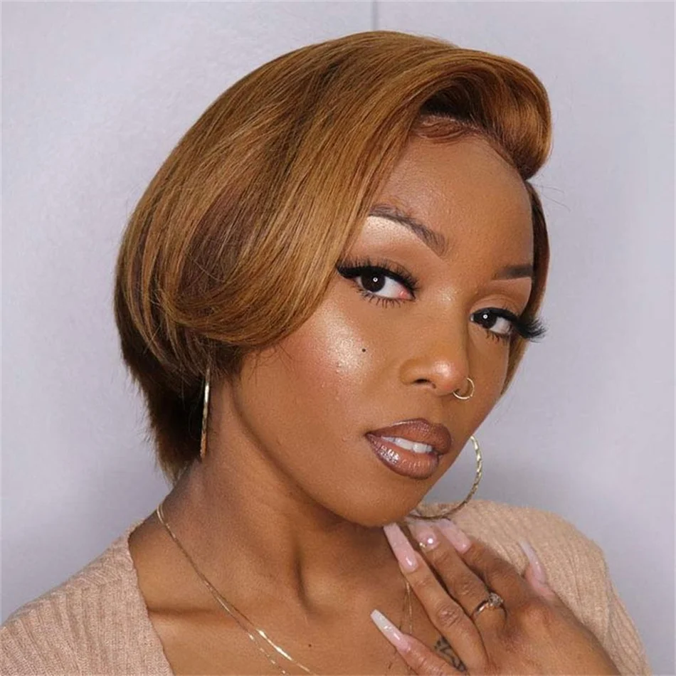 Short Bob Wig Pixie Cut Wig Straight Human Hair Wigs 13×4 Transparent Lace Fronta Wig For Women Highlight Straight Pixie Cut Wig