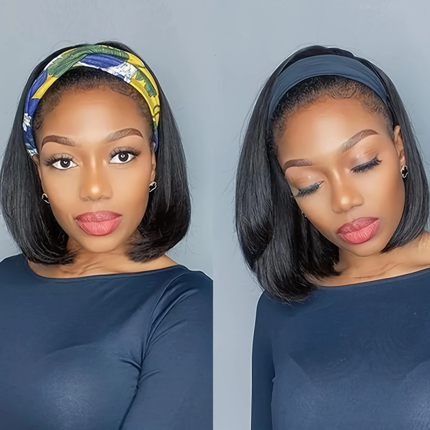 Short Bob Wigs Straight Headband Wig 100% Human Hair Wigs for Women Machine Made Headband Wig for Daily Use High Quality Wig