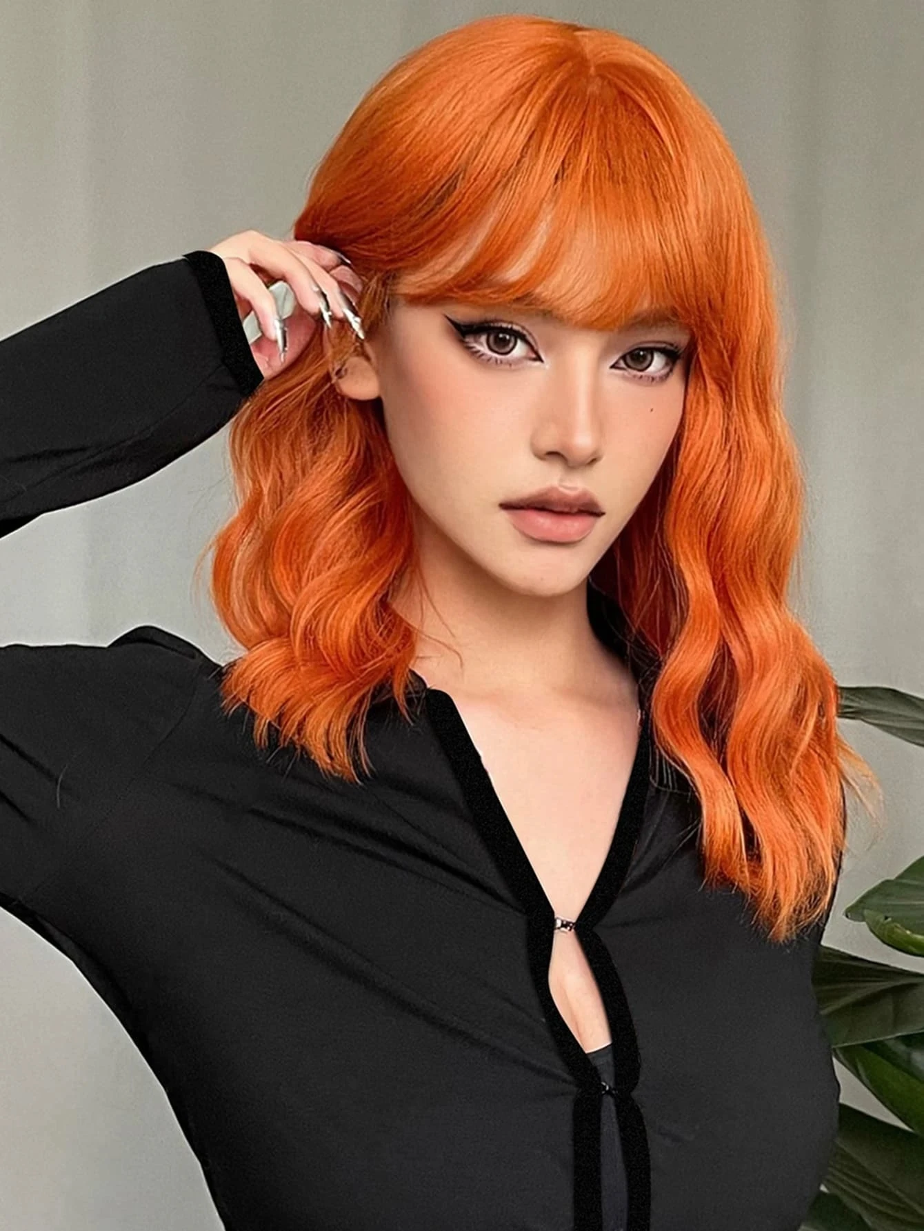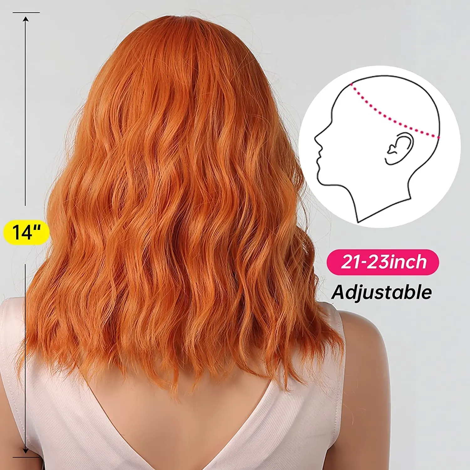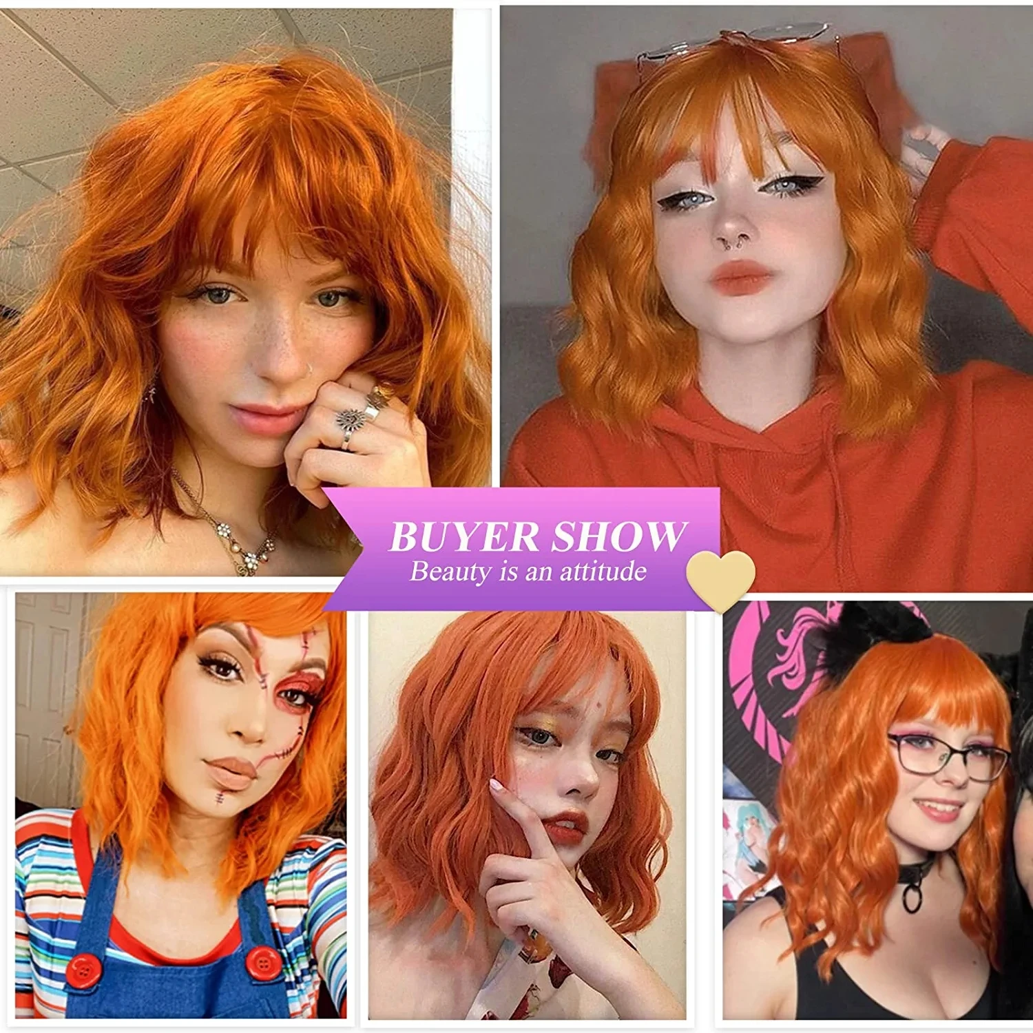 Short Curly Ginger Orange Copper Synthetic Hair Wigs with Bangs for Women Afro Cosplay Party Natural Wave Bob Wig Heat Resistant