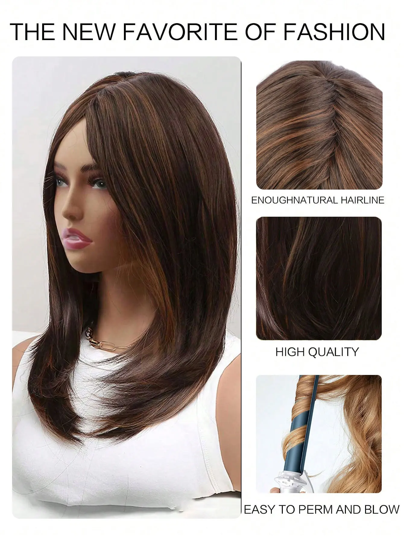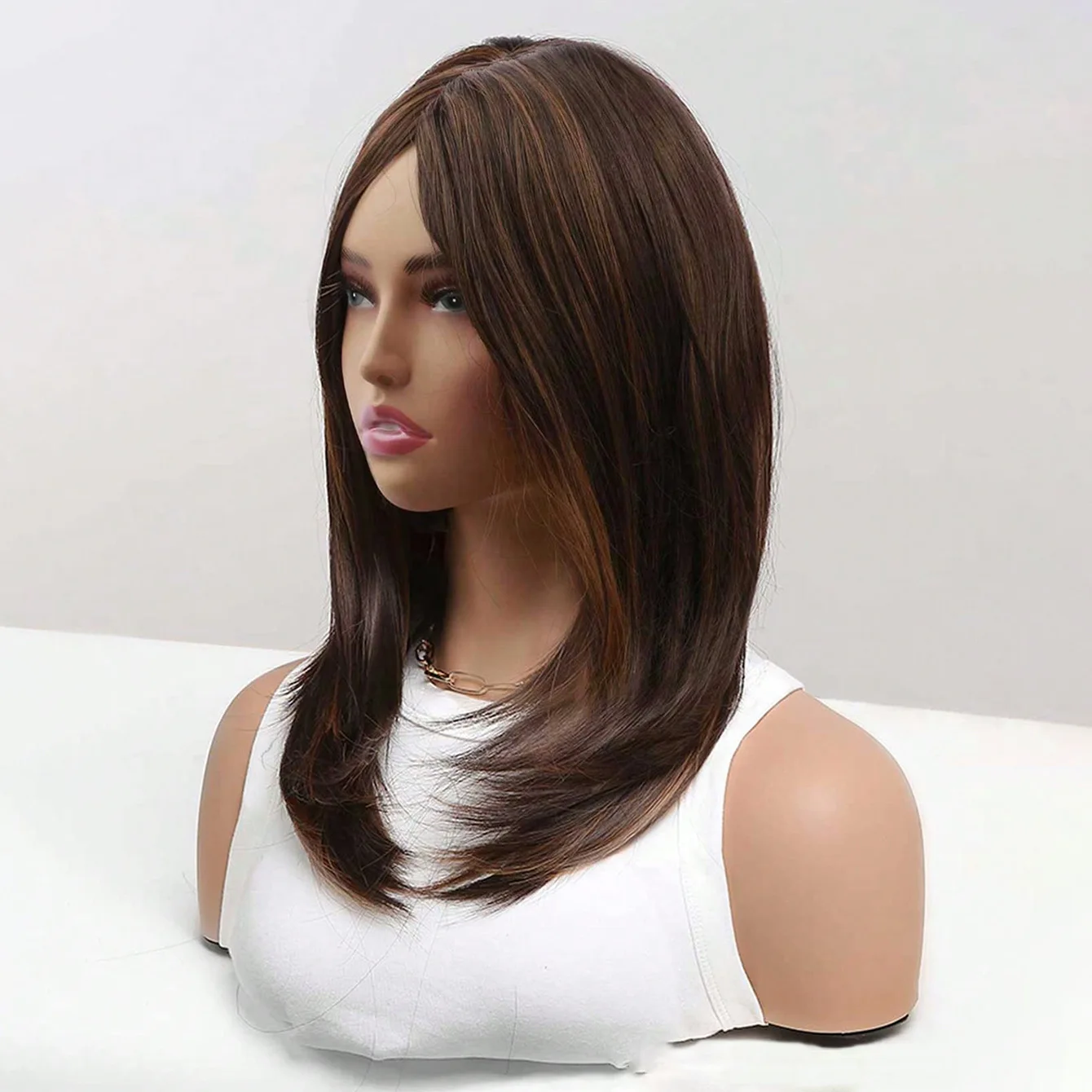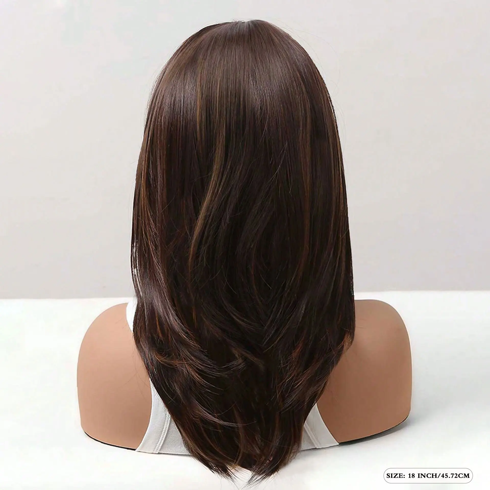 Short Layered Bob Wig 18 Inch White Women Highlights Brown Shoulder Part Straight Synthetic Wig Beginner Friendly Stylish Wig