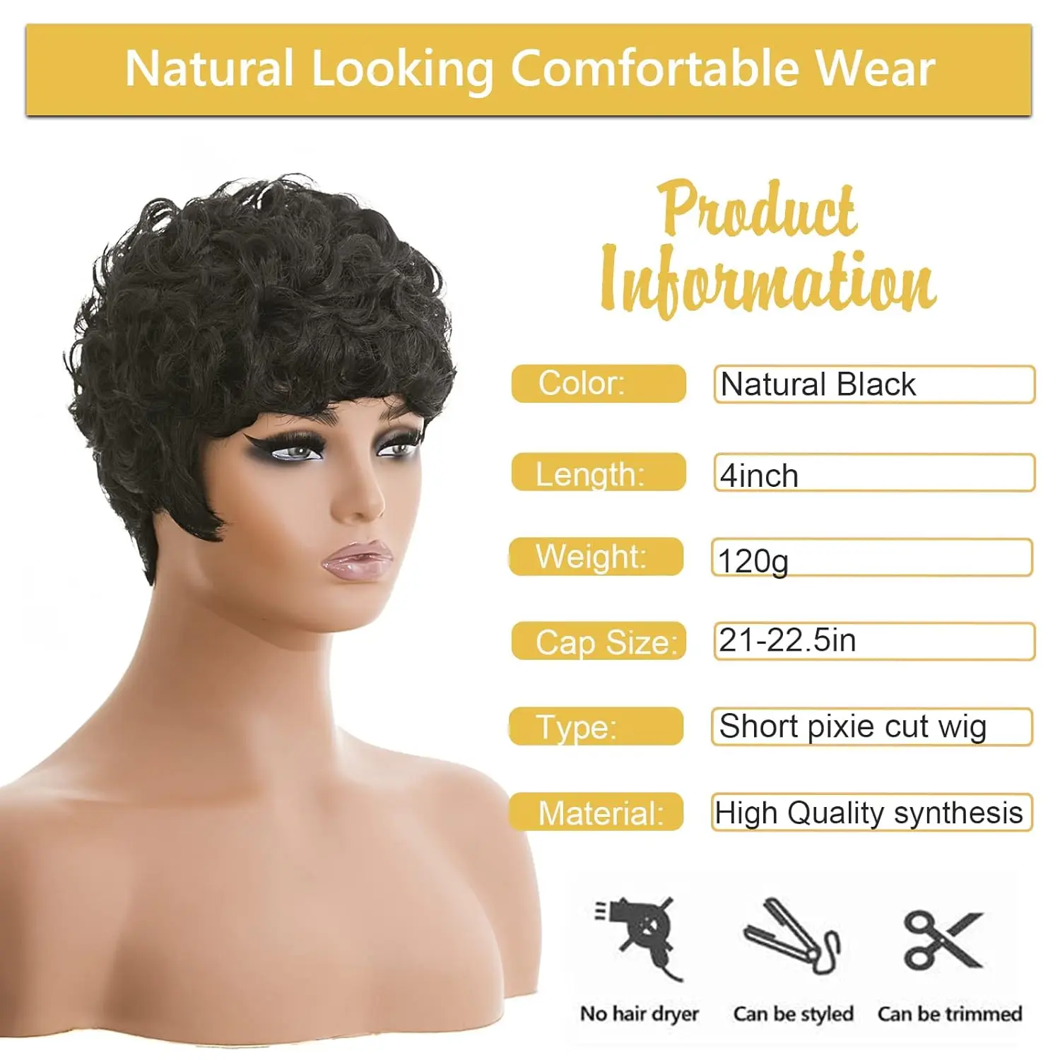 Short Pixie Cut Wig for Black Women, Short Afro Natural Black Pixie Wigs Short Pixie Wig Short Pixie Wigs for Black Women Africa