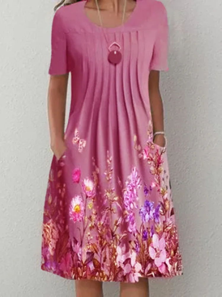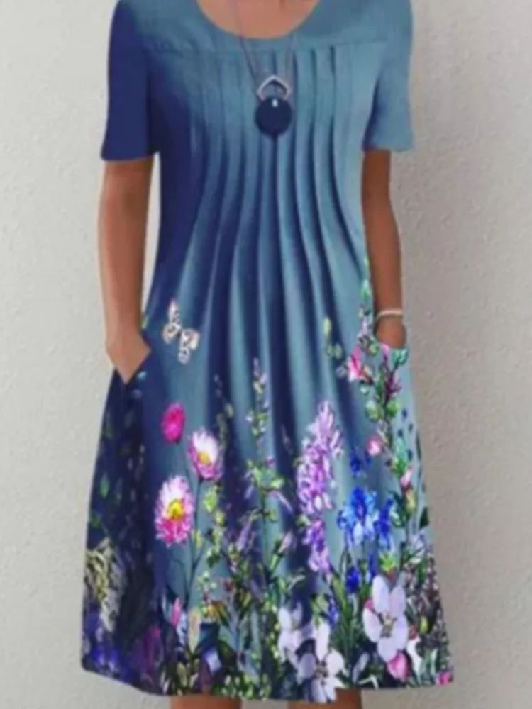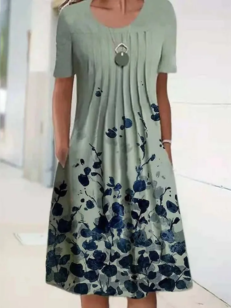 Short Sleeve Floral Printing Women Dresse Loose Casual Beach Vacation Midi Dresse Vintage Elegant Party Dresses Female Summer