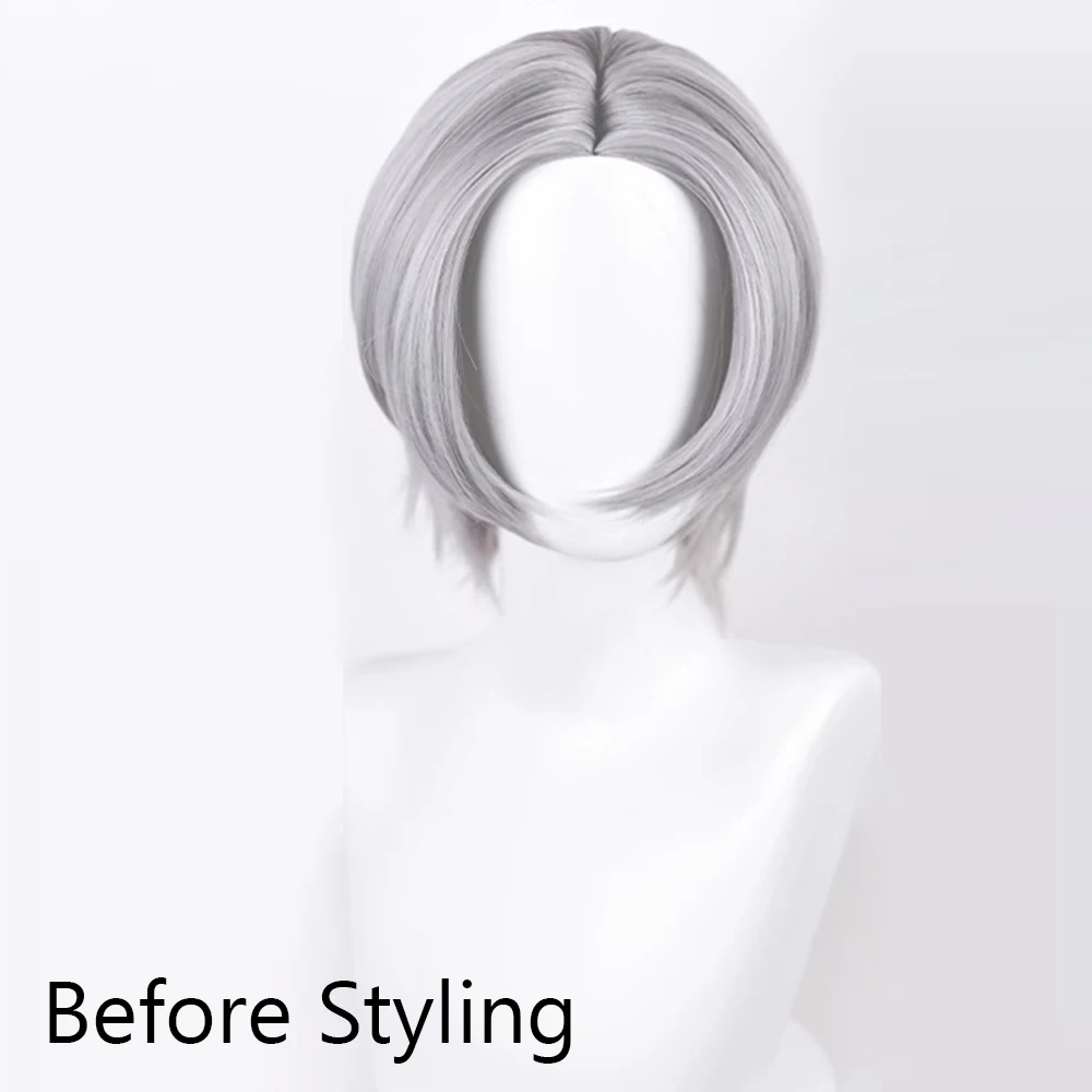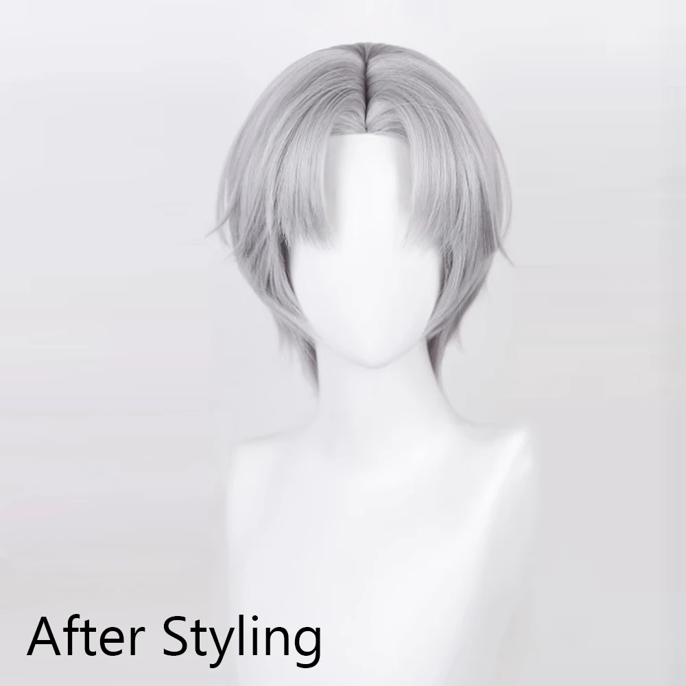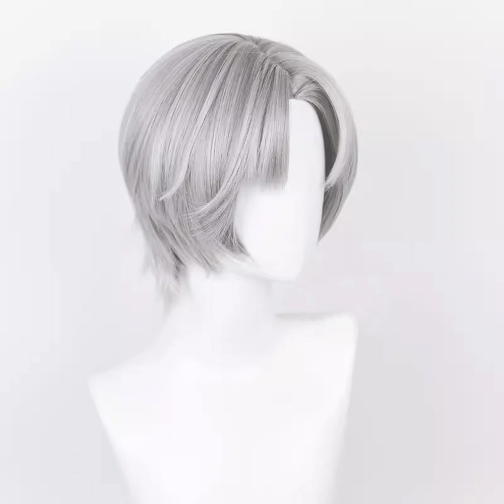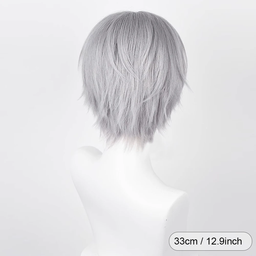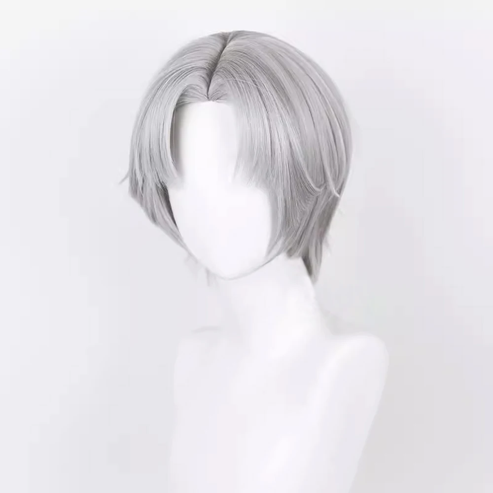 Short Straight Synthetic Men Grey Wig Middle Part Fluffy Anime Game Ash Heat Resistant Wig for Daily Party