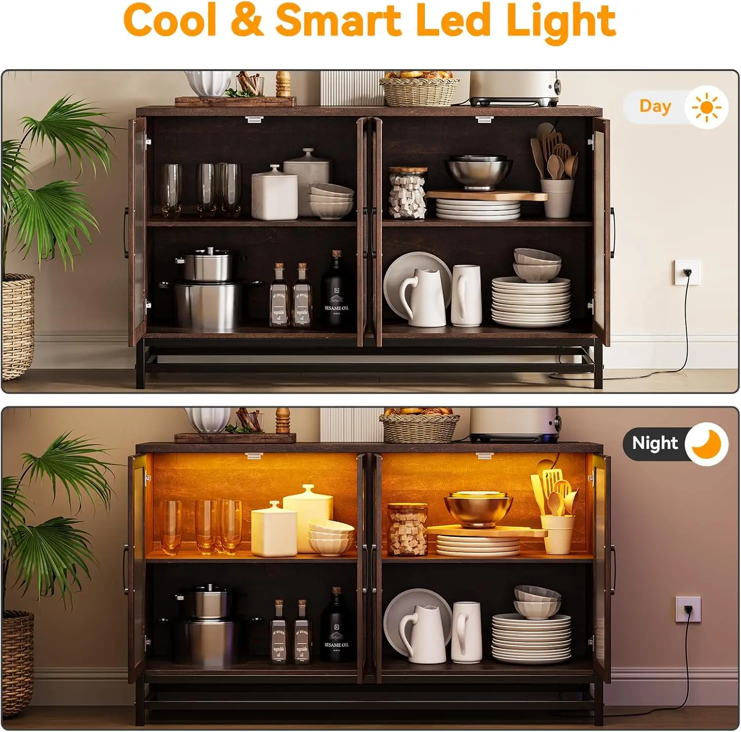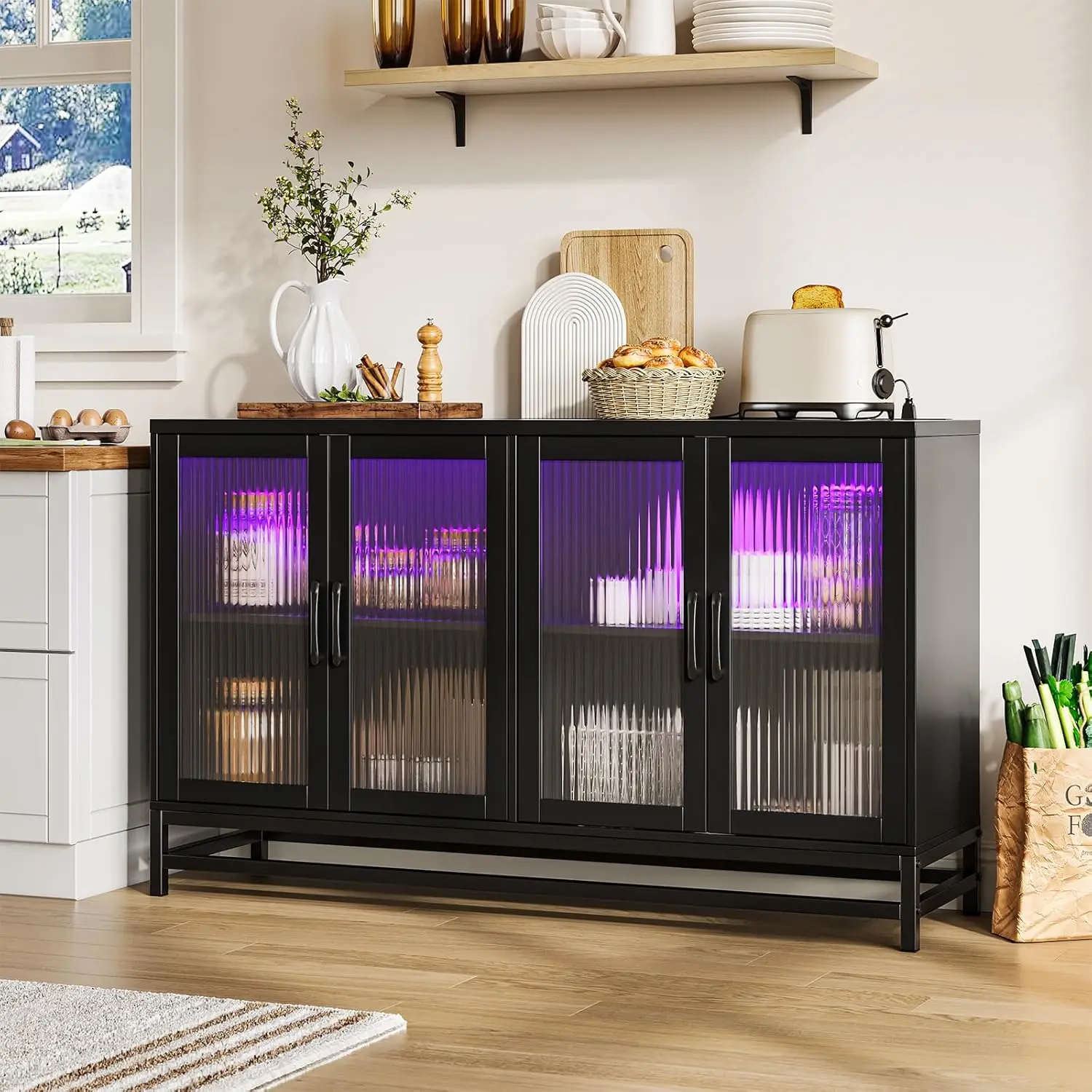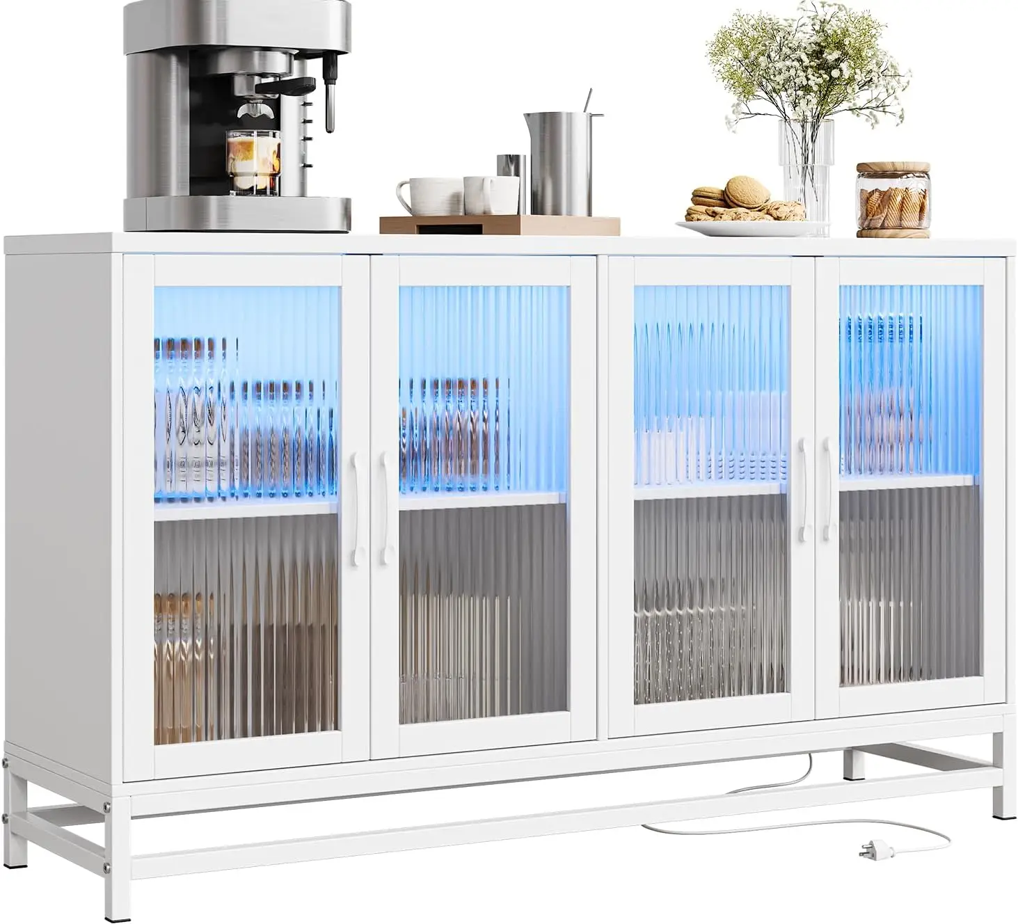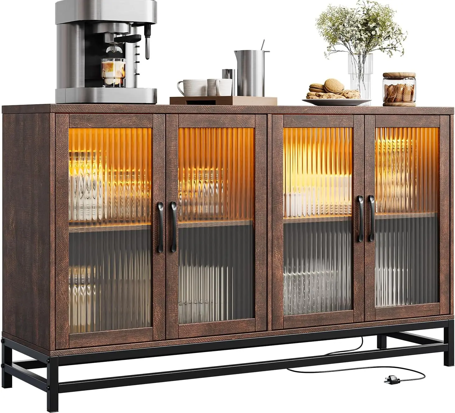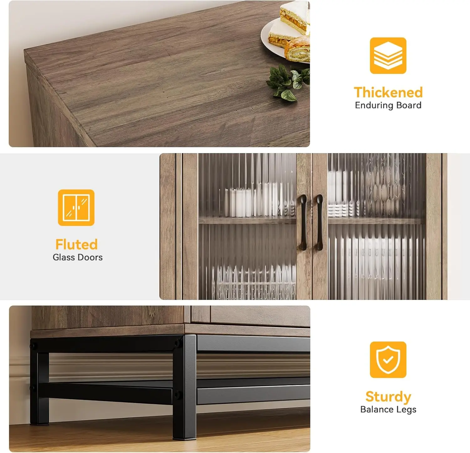 - BEAUTIFUL KITCHEN CABINET: This sideboard buffet cabinet features unique wood grain and fluted glass doors, Its sleek lines and minimalist contours create an inviting aesthetic, making it an ideal choice for both contemporary and rustic interiors