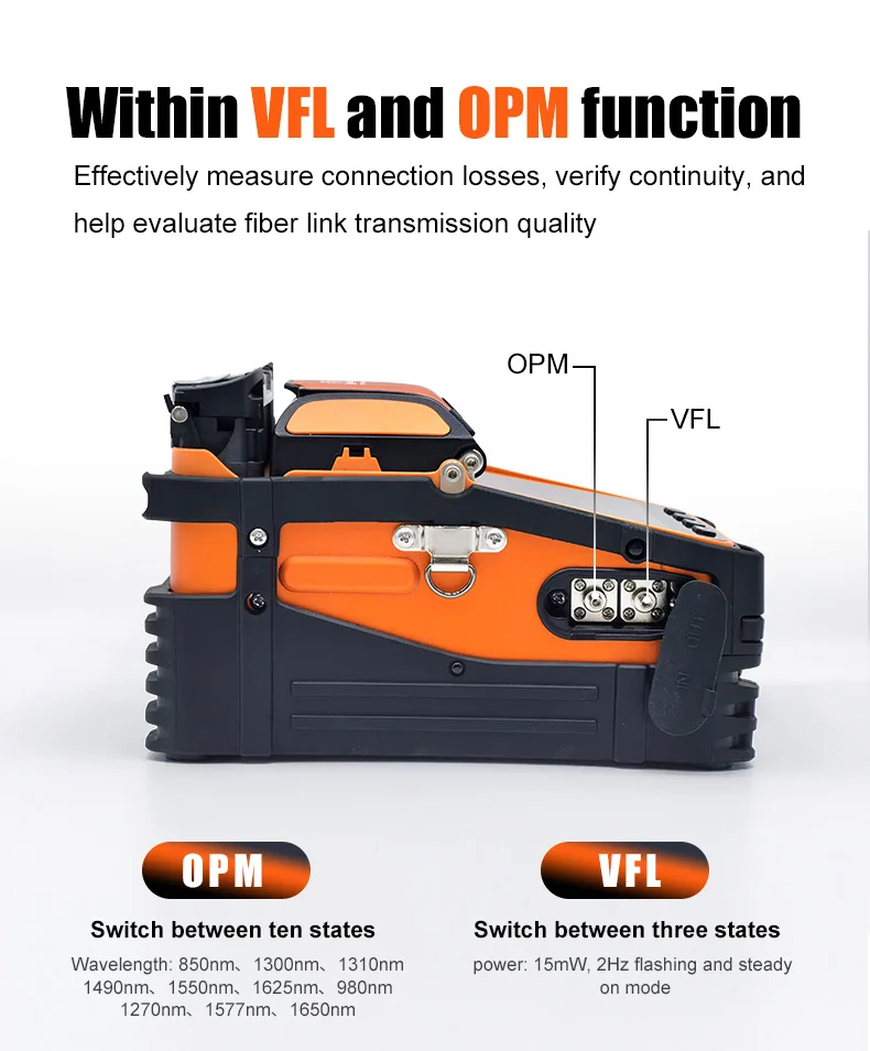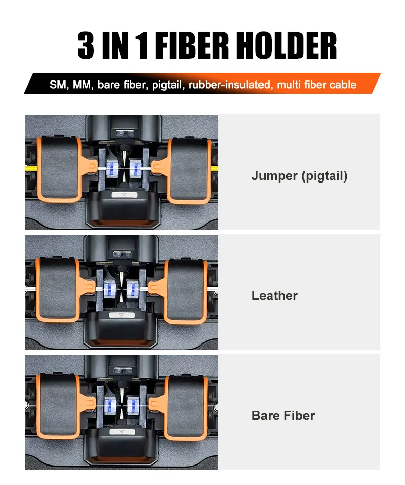 Signal Fire AI-9 use the latest core alignment technology with auto focus and six motors, it is a new generation of fiber fusion splicer. It is fully qualified with trunk construction of medium and short distance, FTTH project, security monitoring and other fiber cable splicing projects. The machine uses industrial quad-core CPU, fast response, is currently one of the fastest fiber splicing machine in the market; with 5-inch 800X480 high-resolution screen, the operation is simple and intuitively; and up to 300 times focus magnifications, making it is very easy to observe the fiber with naked eyes. 5 seconds speed core alignment splicing, 15 seconds heating, the working efficiency increased by 50% compared to ordinary splicing machines. Under the conditions of rigorous testing, the performance is still outstanding; toolbox is small, exquisite, durable, and with unique bench design. The design of operating platform reflects the humanistic care; unique lighting design, it is convenient for night construction or repair. Screen brightness is adjustable and it is convenient for outdoor sunshine environment operation. The core parts are using imported brands, aviation metal body material with exquisite details. With the combination of advanced technology and design, the new generation of optical fiber fusion splicer will bring you a reliable and comfortable user experience.