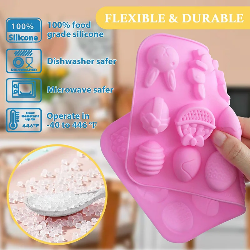 Silicone Gummy Chocolate Mold 9 Shaped Egg Rabbit Candy Mould Wax Melt Tray Gummies Cupcake Decor Kids Holiday Gift Fudge Making