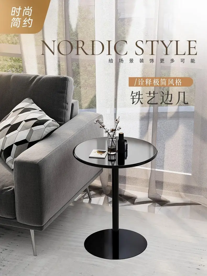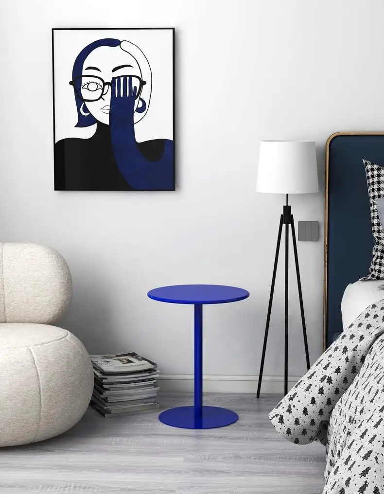 Simple Cream Style Luxury Sofa Side Table Bedroom Bedside Table Round Tables Blue Coffee Tables Tea Table Living Room Furniture