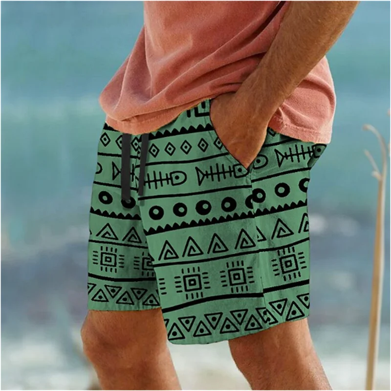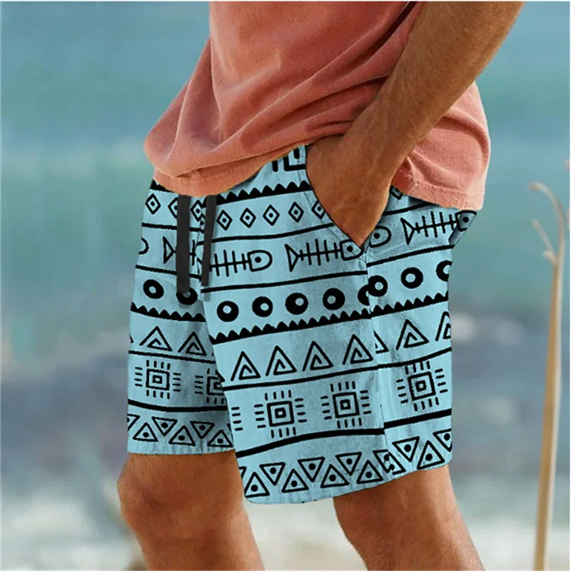 Simple Geometric Patterns Beach Short Fashion Casual Mens 3D Printed Summer Short Pants Trend Streetwear Oversized Swim Trunks