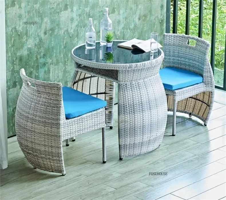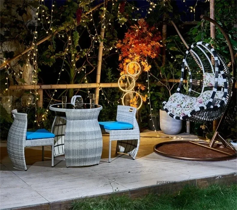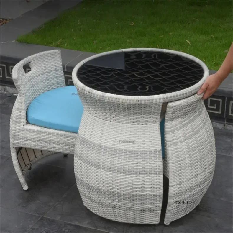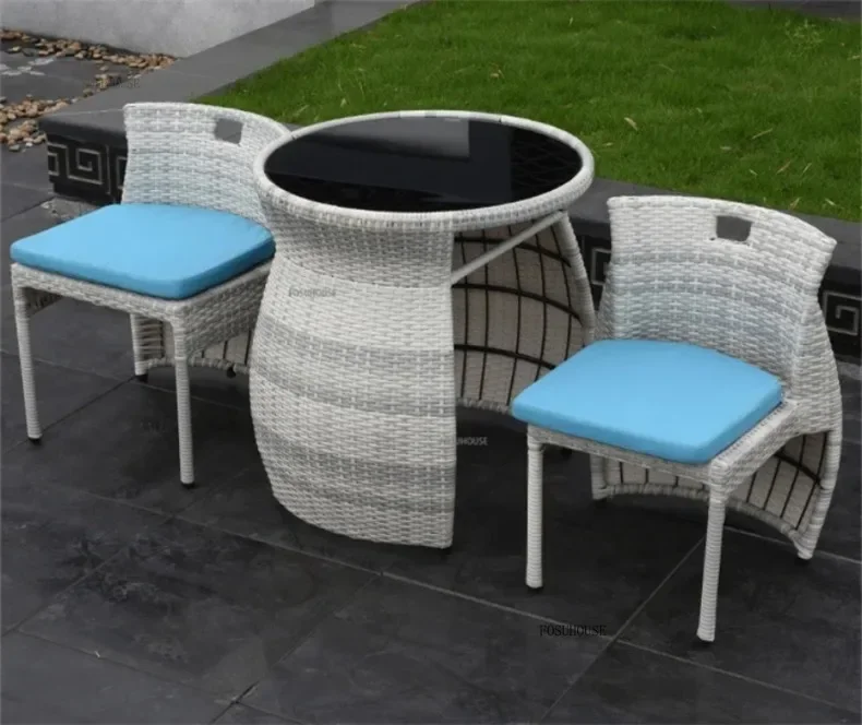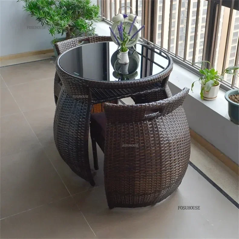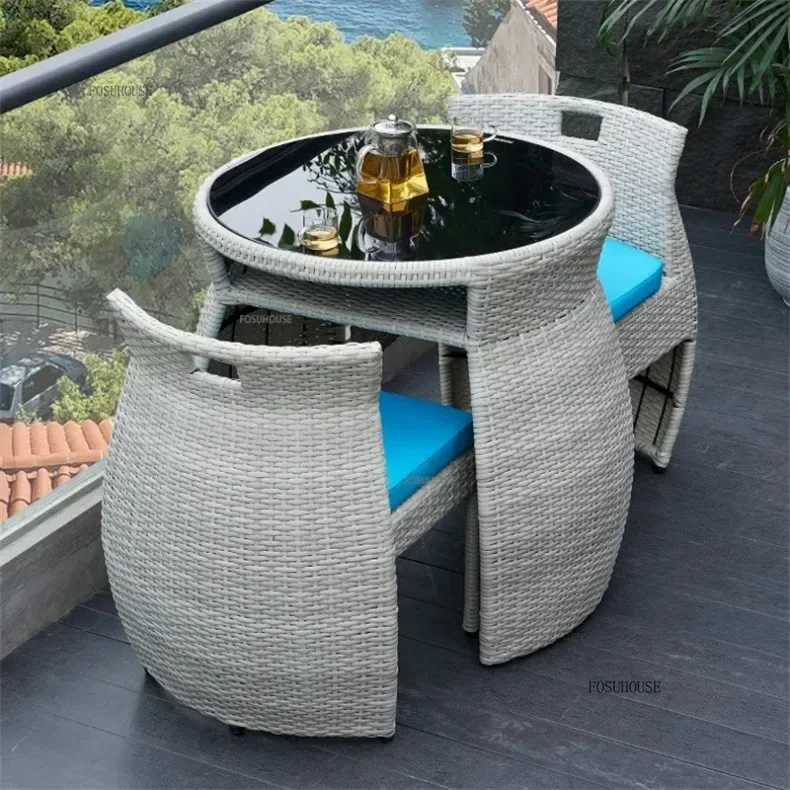 Simple Modern Garden Furniture Sets for Courtyard Sunscreen Waterproof Tables Creative Rattan Outdoor Furniture Sets for Balcony
