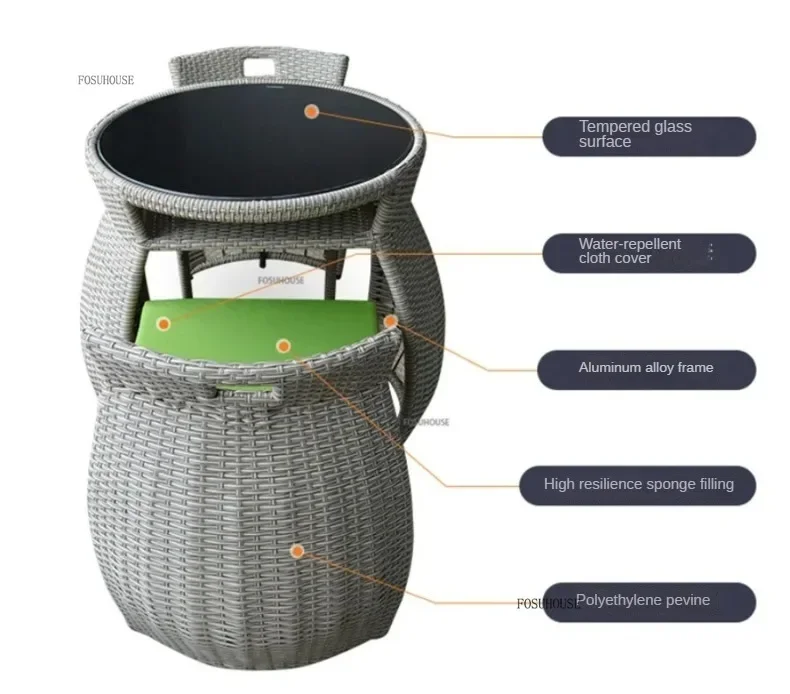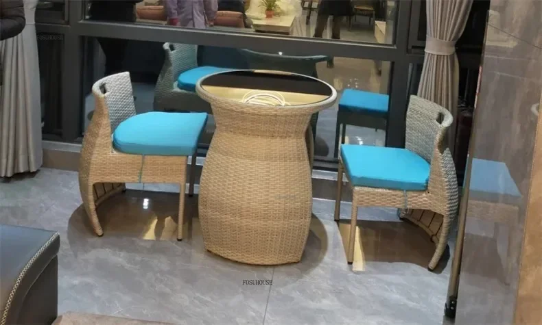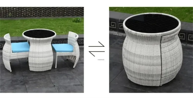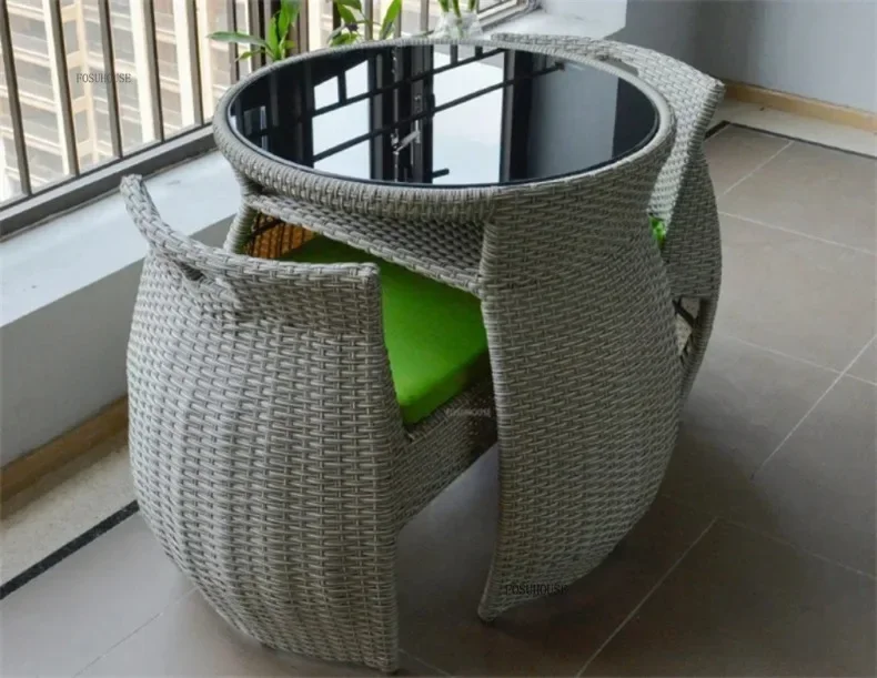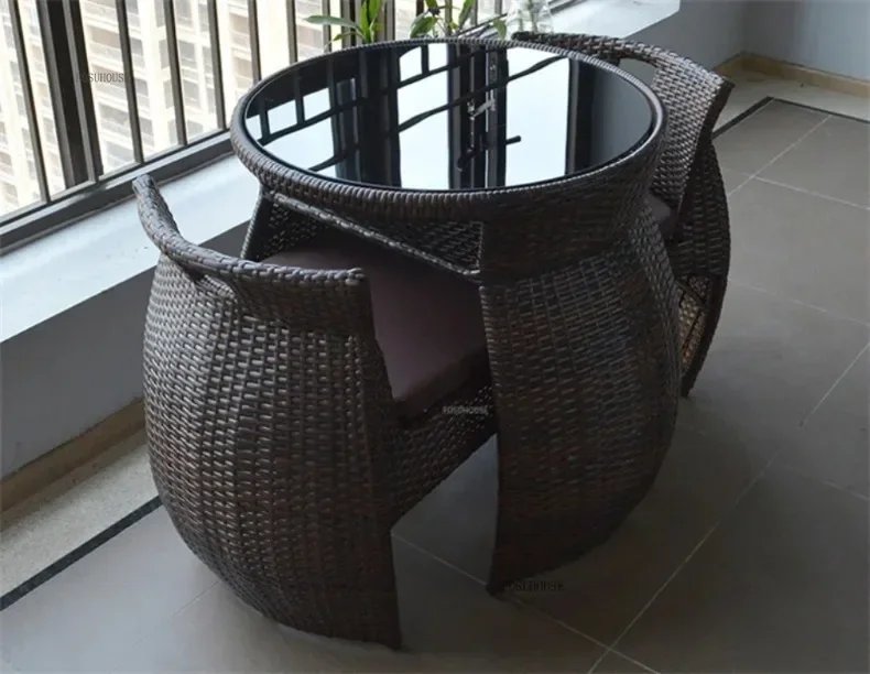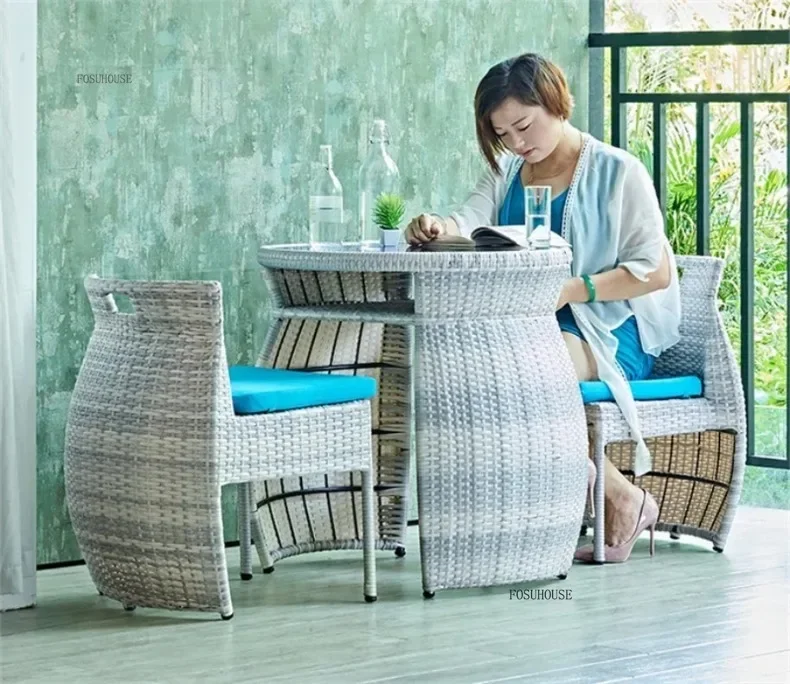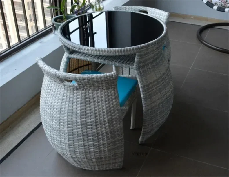 Simple Modern Garden Furniture Sets for Courtyard Sunscreen Waterproof Tables Creative Rattan Outdoor Furniture Sets for Balcony