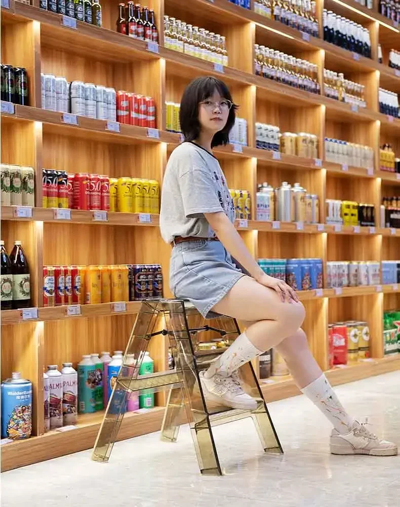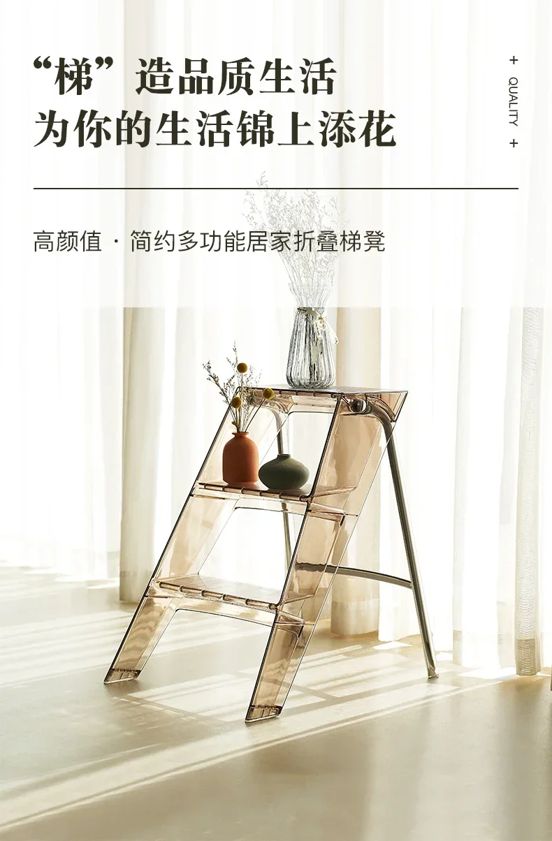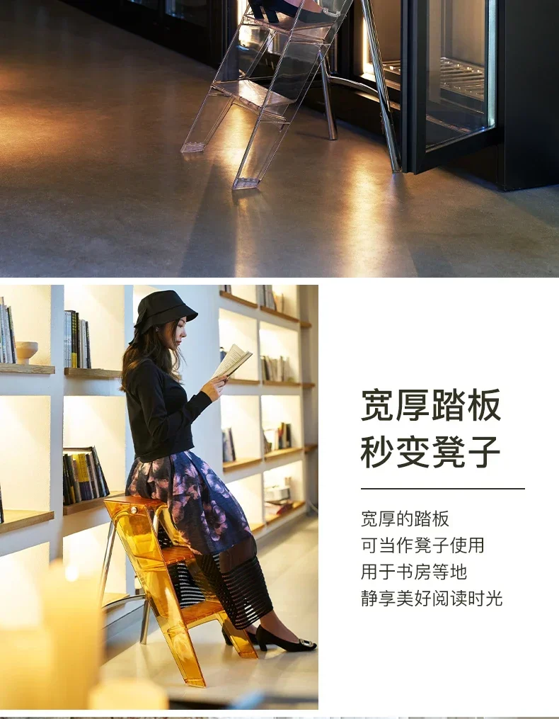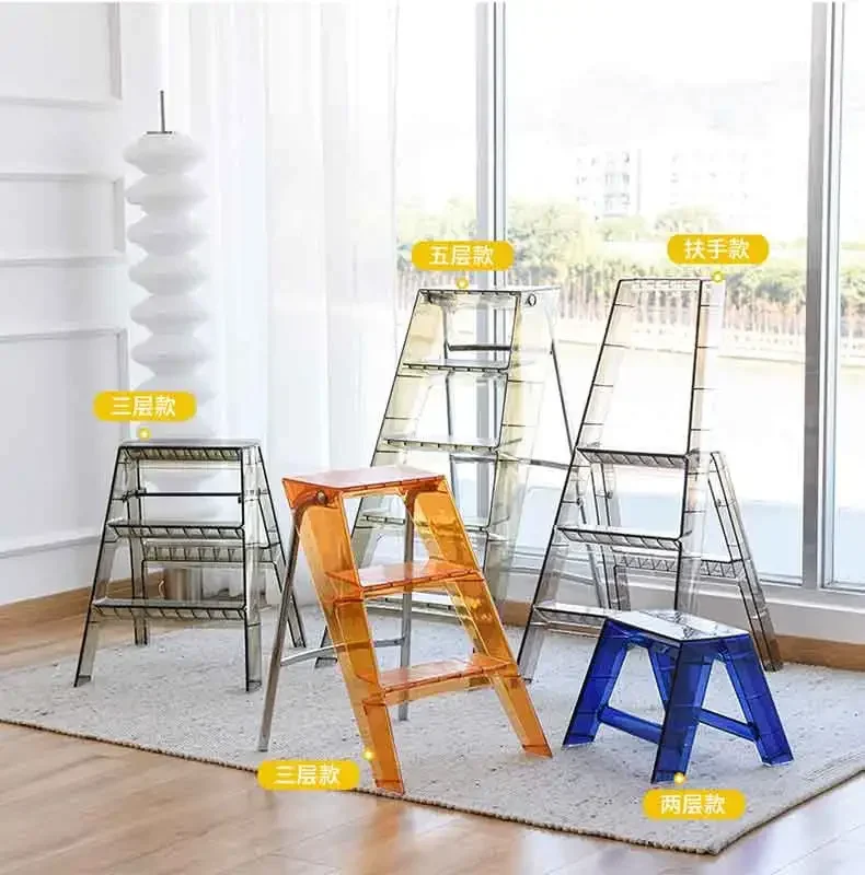 Simple Multi-Function Ladder High Aesthetic Stool Home Furniture Indoor Folding Ladder Thick Anti-slip Handrail Secure Access