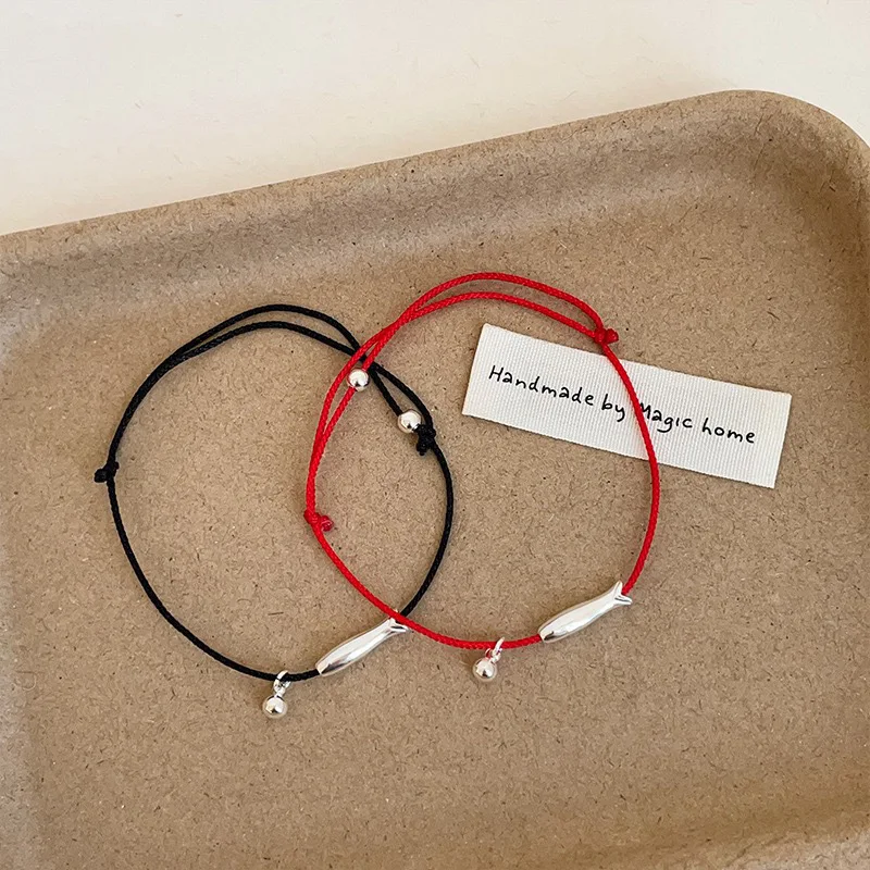 Simple Silver Color Small Fish Bracelet for Women Fashion Adjustable Woven Couple Bracelet Exquisite Cute Charm Jewelry Gift