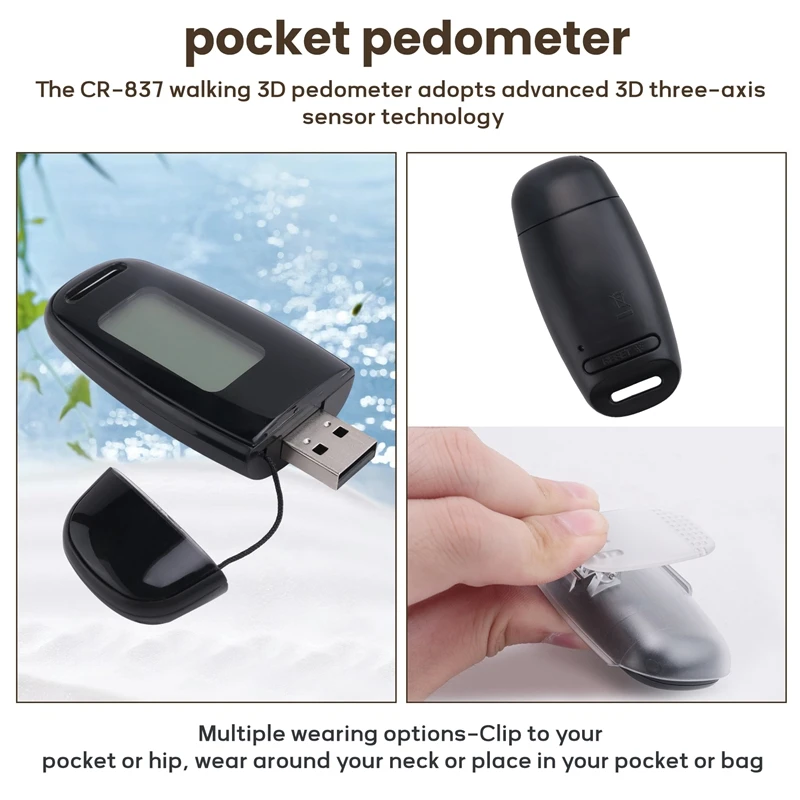 SMART & ACCURATE : The CR-837 walking 3D pedometer has advanced 3D Tri-Axis Sensor technology so it is much more accurate than most pedometers which can provide superior accuracy in reading steps in any position – up, down, flat on its side, or any angle.It can count up to 99,999.Multiple wearing options-Clip to your pocket or hip, wear around your neck or place in your pocket or bag.