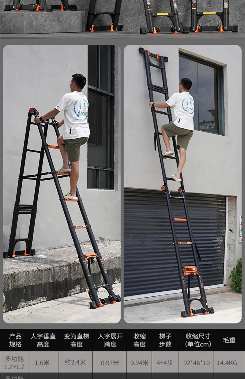 Simple Telescopic Step Ladders Home Kitchen Folding Aluminum Ladders Multi-functional Thickened Lifting Portable Folding Ladder