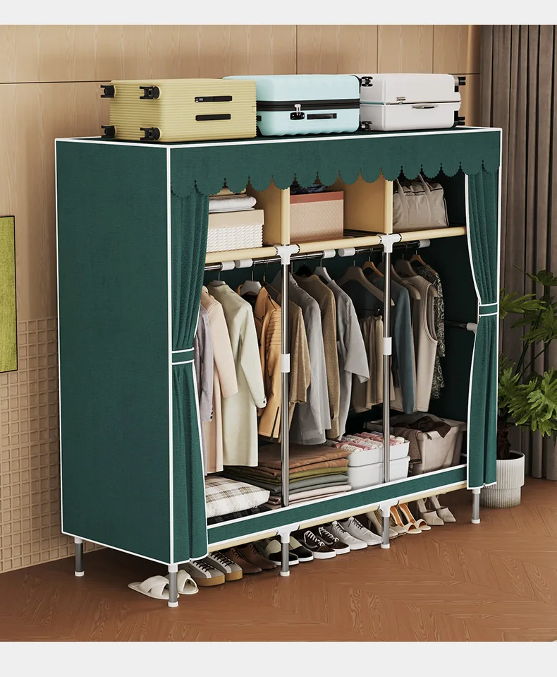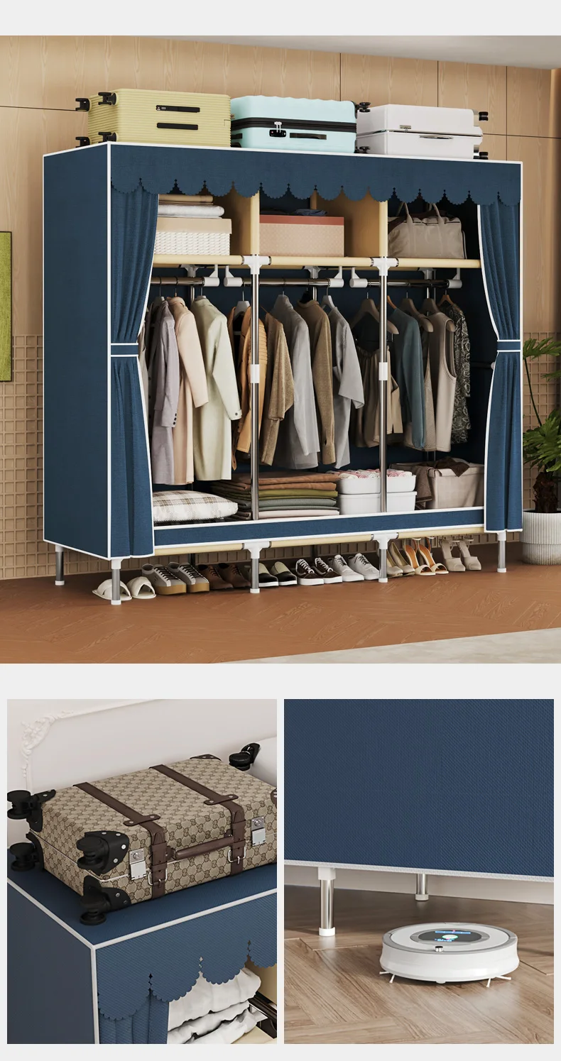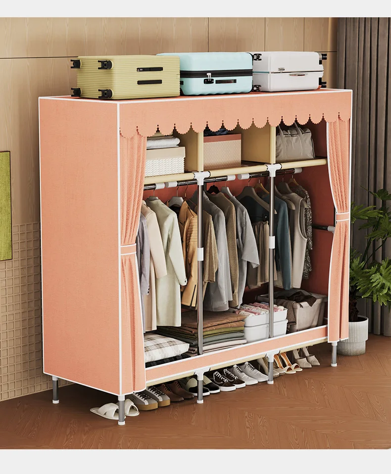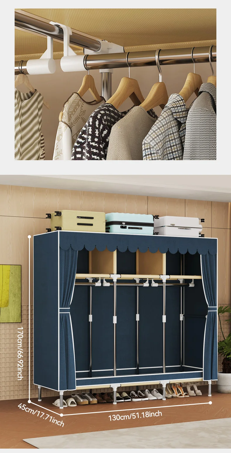 Simple wardrobe, modern minimalist fabric cabinet,Steel pipe frame is stable and durable,rental room, household bedroom storage