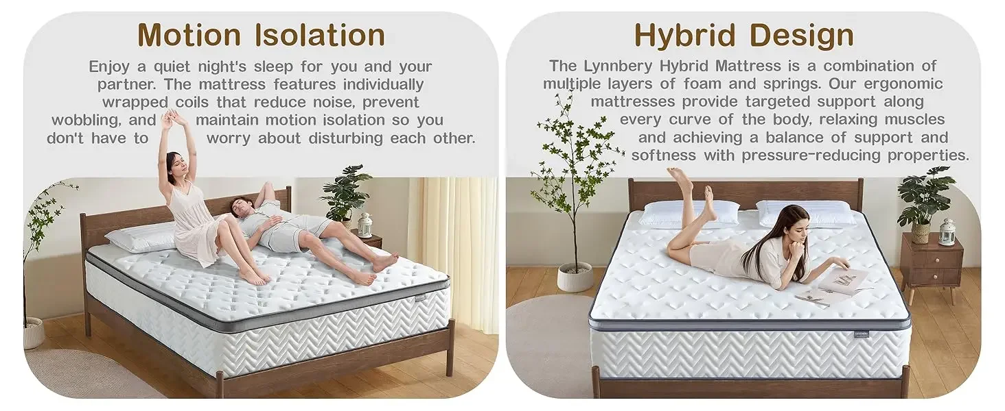 Size Mattress, 12 Inch Hybrid Mattress with Memory Foam and Individual Pocket Springs for Motion Isolation, Pressure Relie