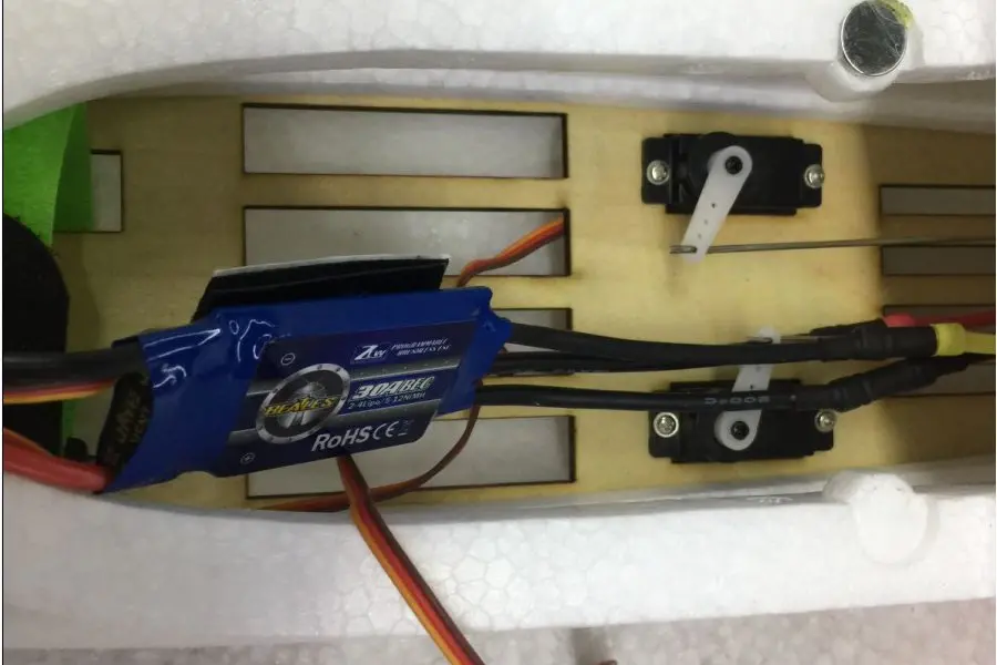 CG: On the main wing carbon fiber rod, the position is 30% of the wing Motor: XXD 2212 2450KV motor