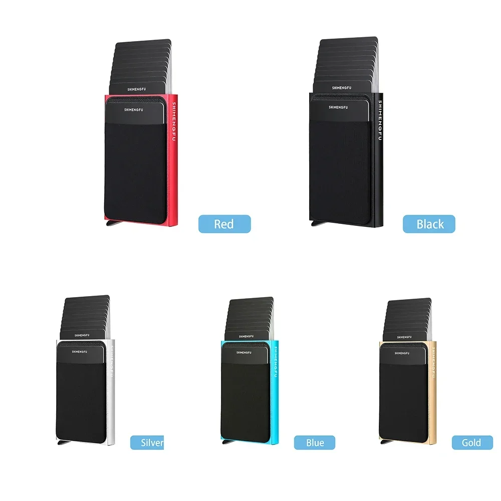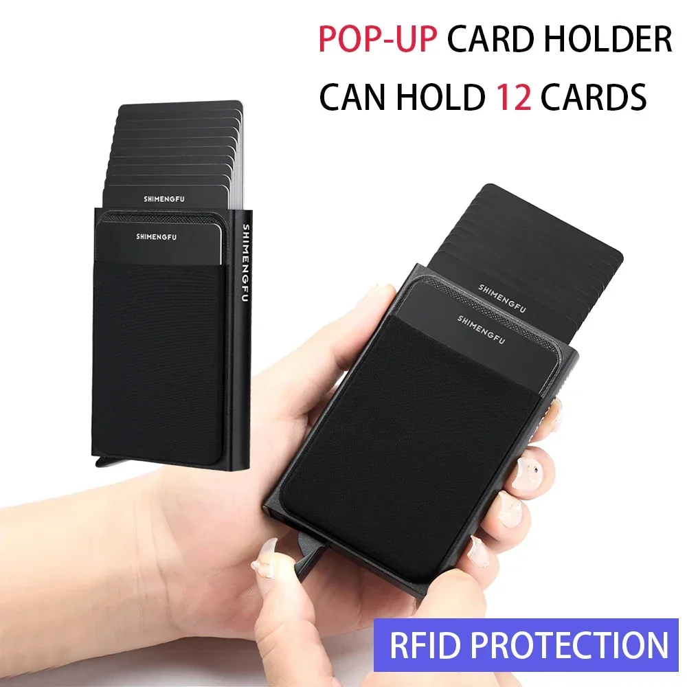 Slim Aluminum Wallet with Elasticity Back Pouch ID Credit Card Holder Mini RFID Wallet Automatic Pop Up Bank Card Case