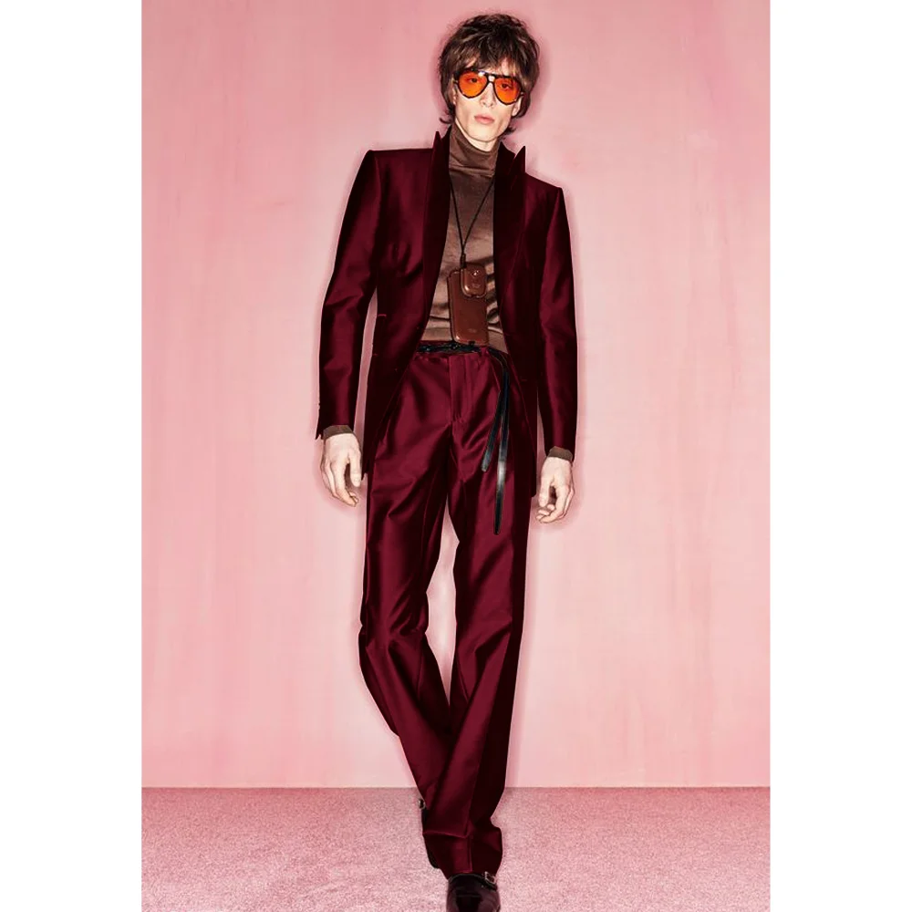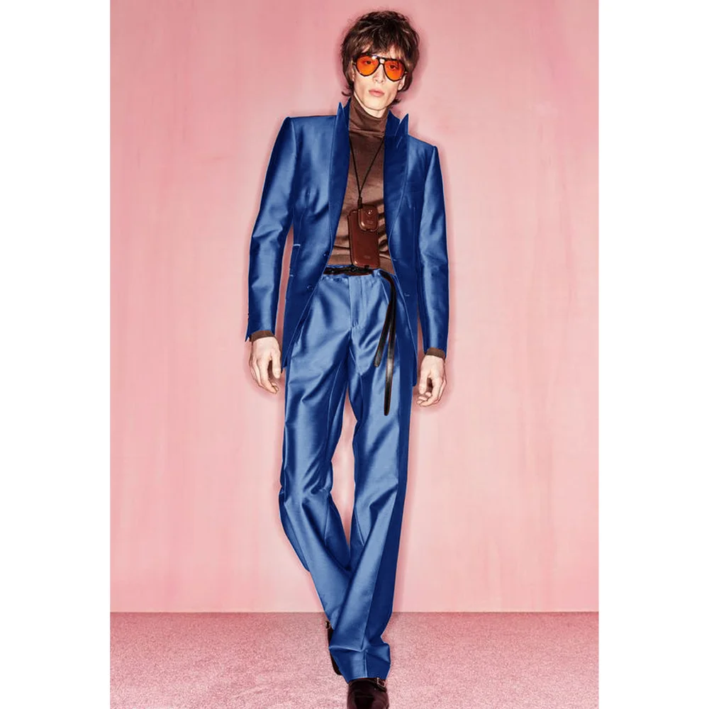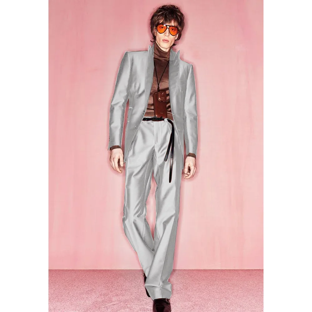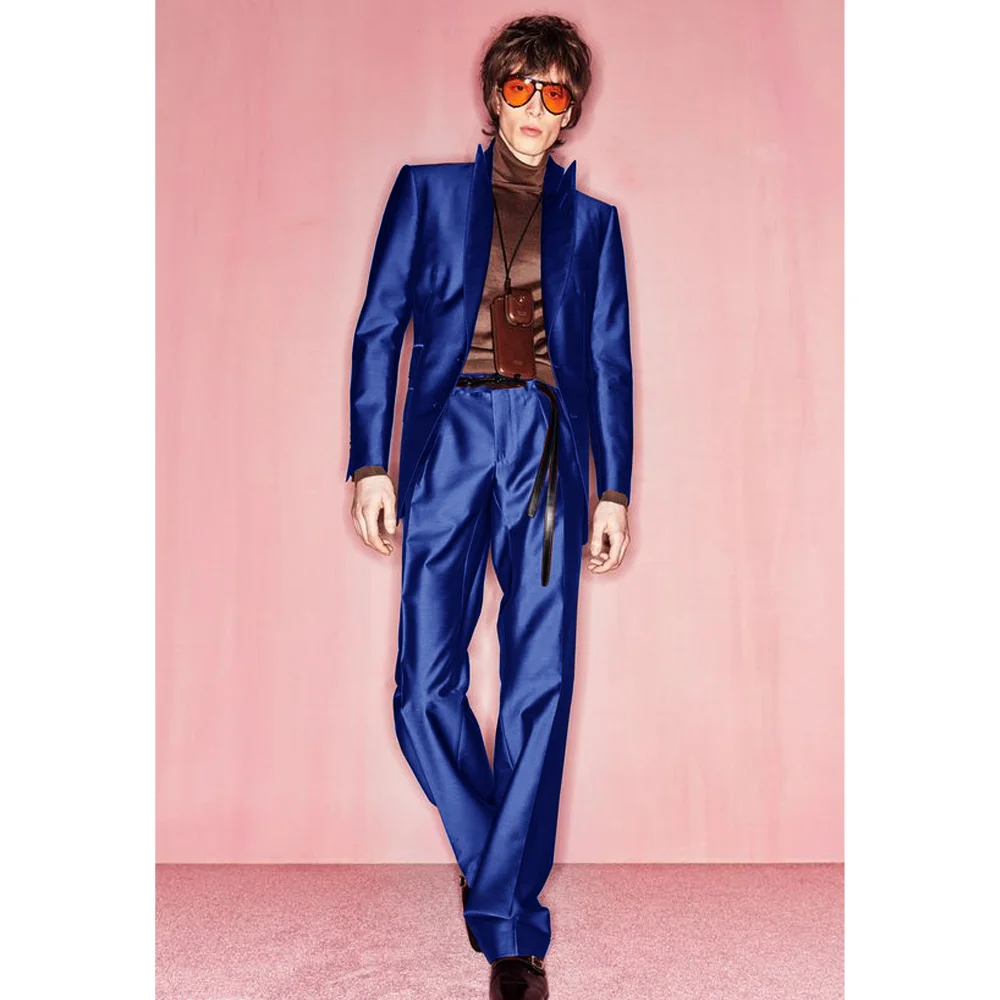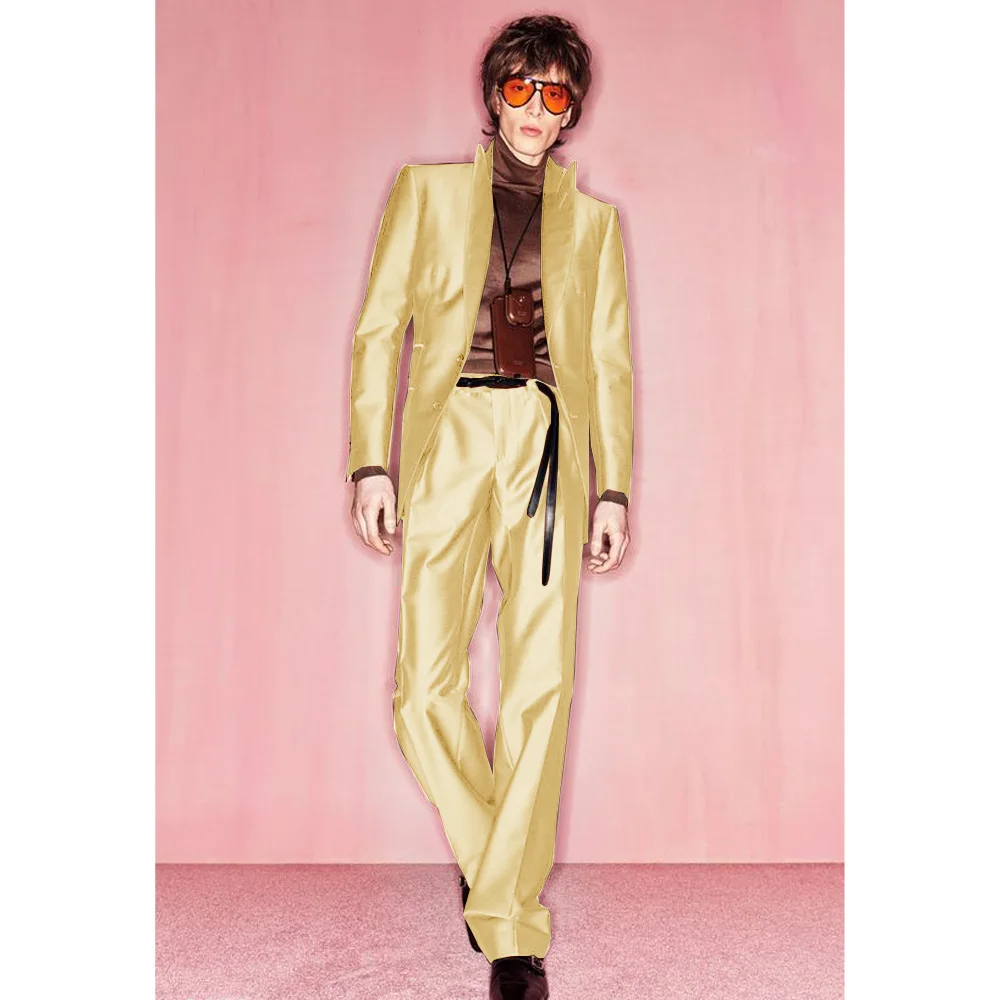 Slim Fit Satin Suits for Men S Double Breasted Suits Men’s Two-piece Suit Single-breasted Casual Stage Slim Fit Big Size Suit