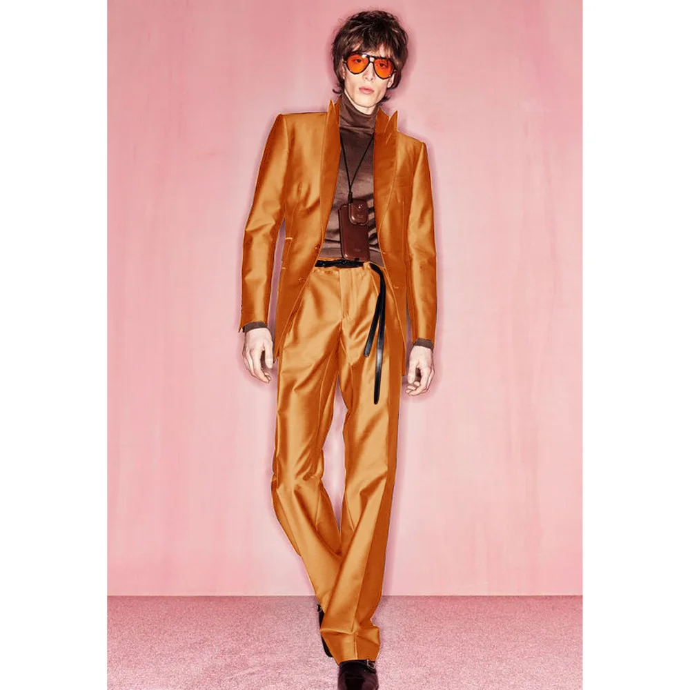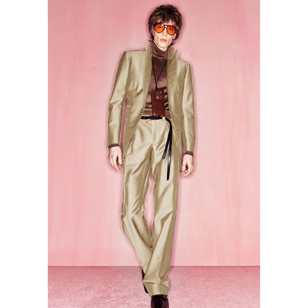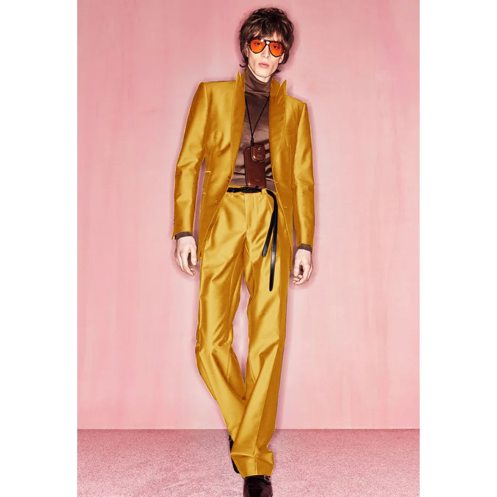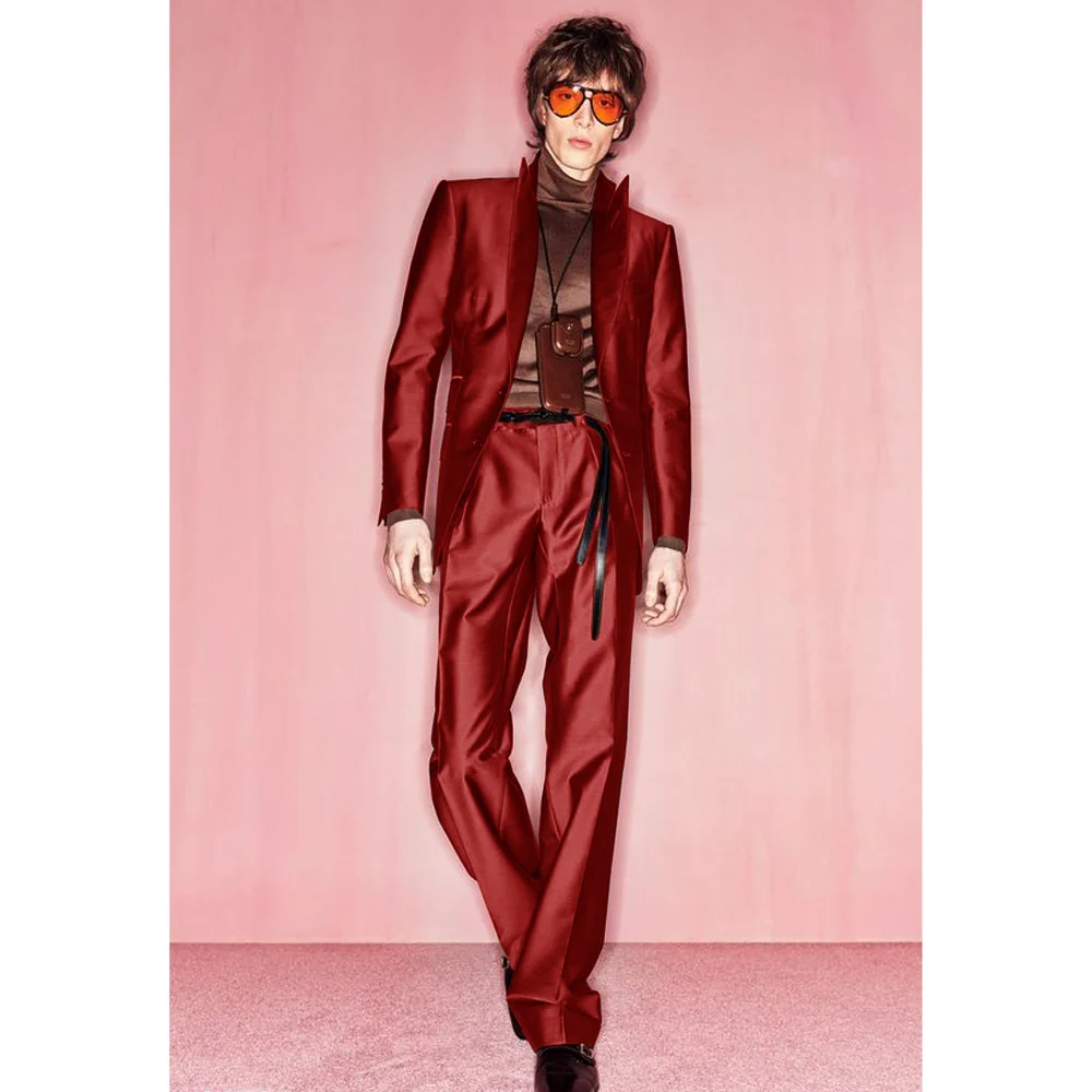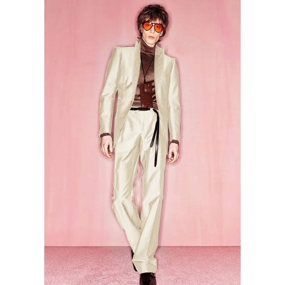 Slim Fit Satin Suits for Men S Double Breasted Suits Men’s Two-piece Suit Single-breasted Casual Stage Slim Fit Big Size Suit