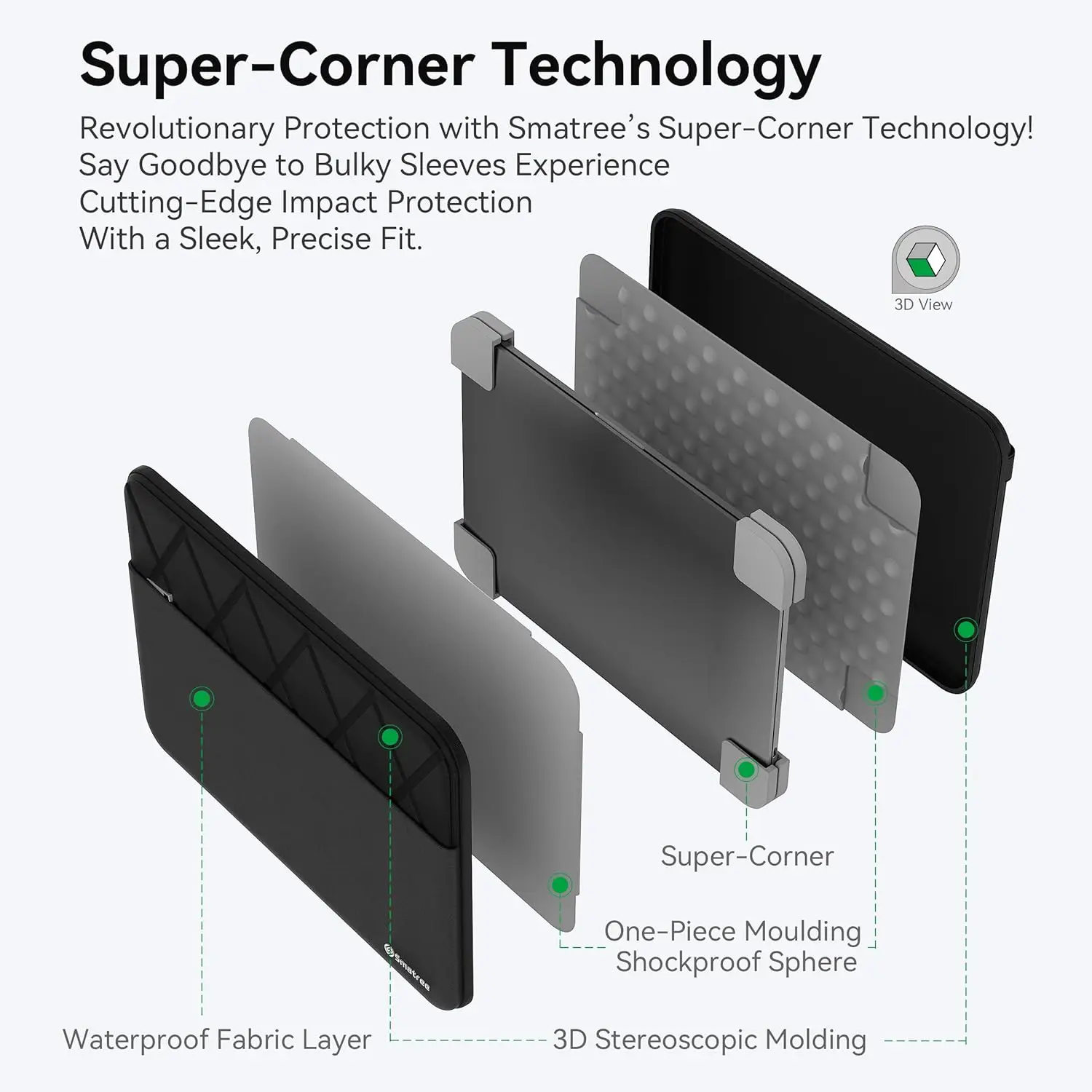 Professional Shock Protection- “Super Corner” Technology: Engineered for superior impact protection, our patented “Super Corner” design safeguards your laptop against accidental drops and collisions without the need for bulky padding. This advanced design ensures that your sleeve remains sleek and perfectly sized, offering top-tier protection without the excess bulk.