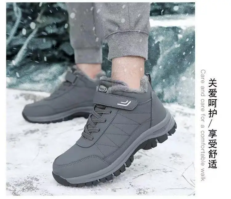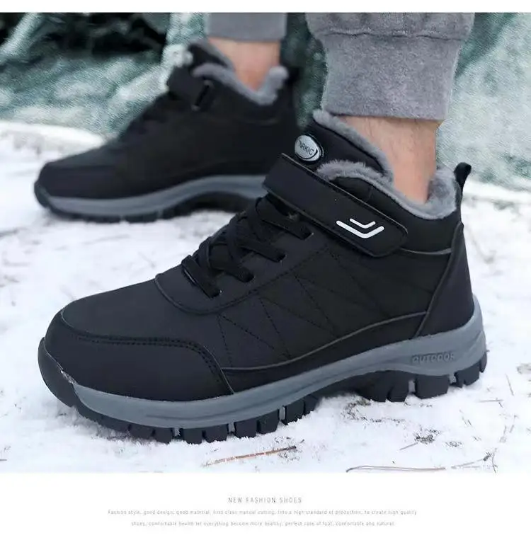 Snow Boots for Men Winter Casual Platform Non-slip Shoes Warm Fur Ankle Boots Plush Combat Outdoor Hiking Motorcycle Boots