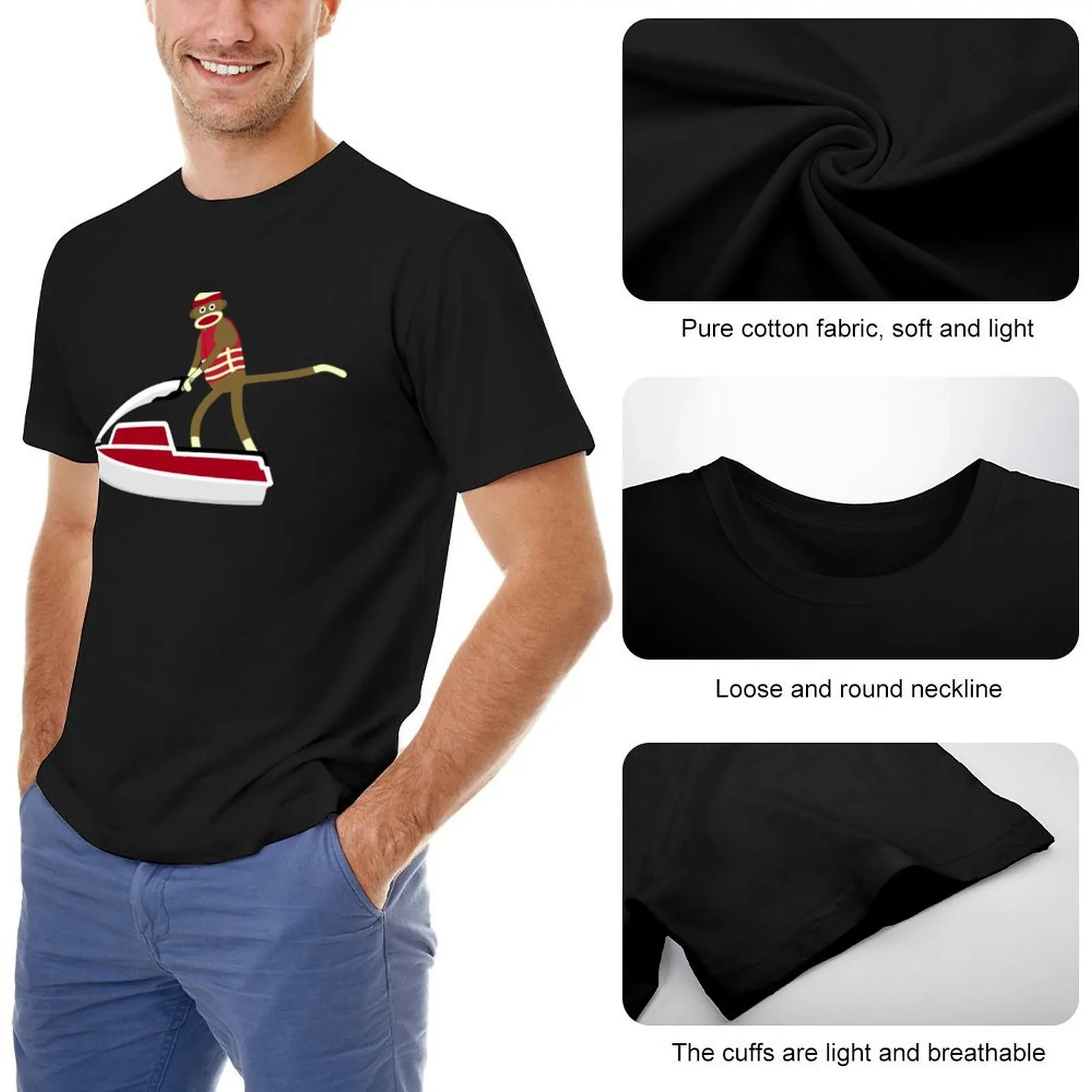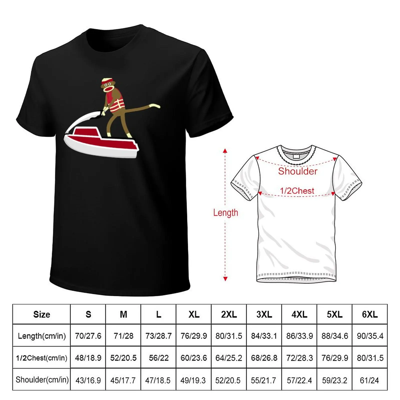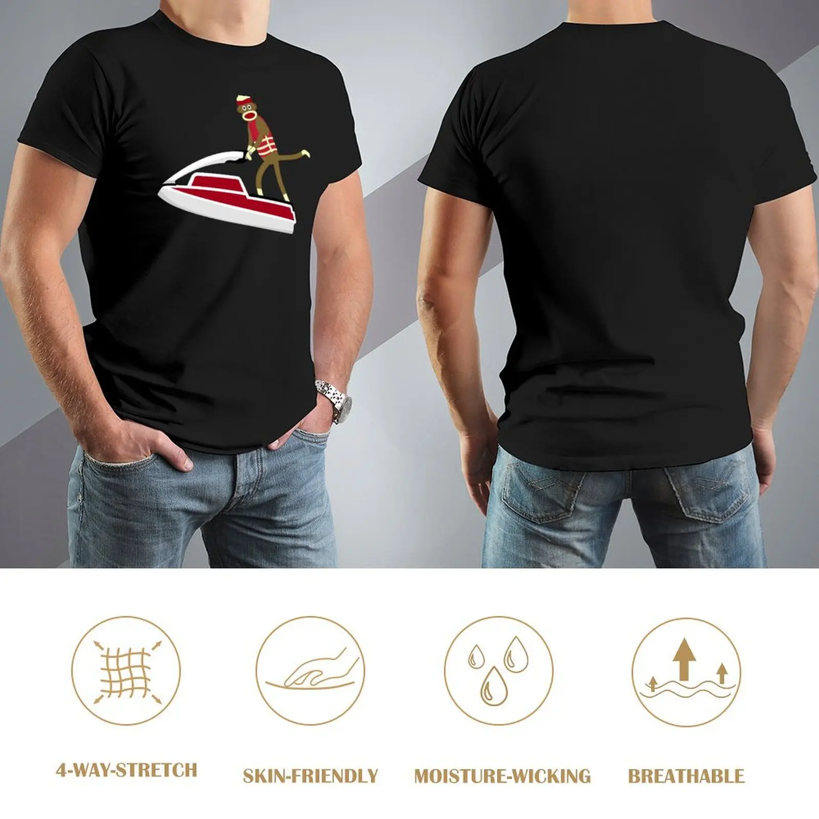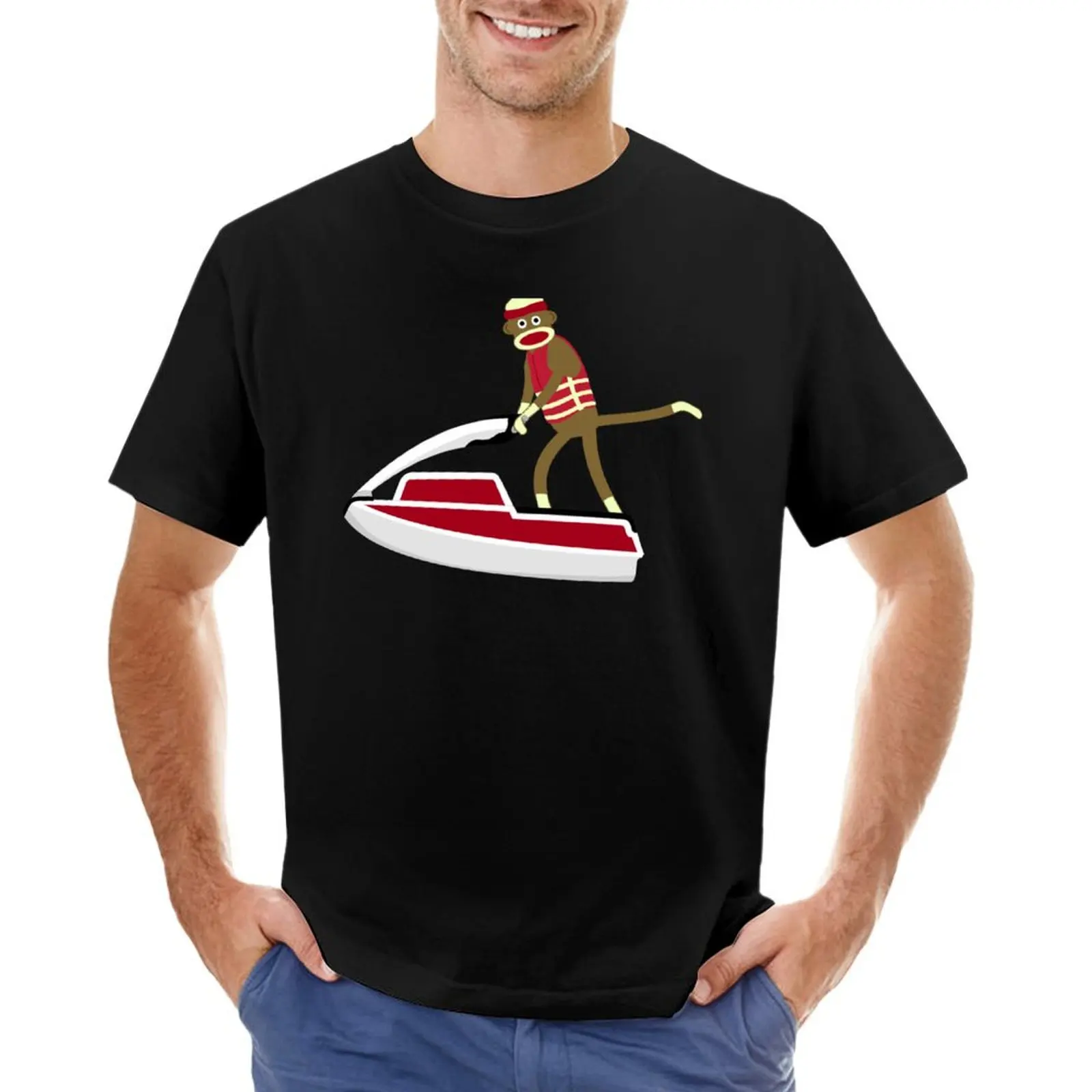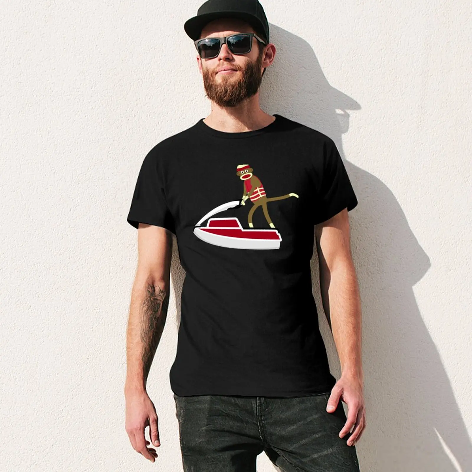 Sock Monkey Jetski Sticker T-Shirt customs graphic shirts man t shirt blacks Men’s t-shirts