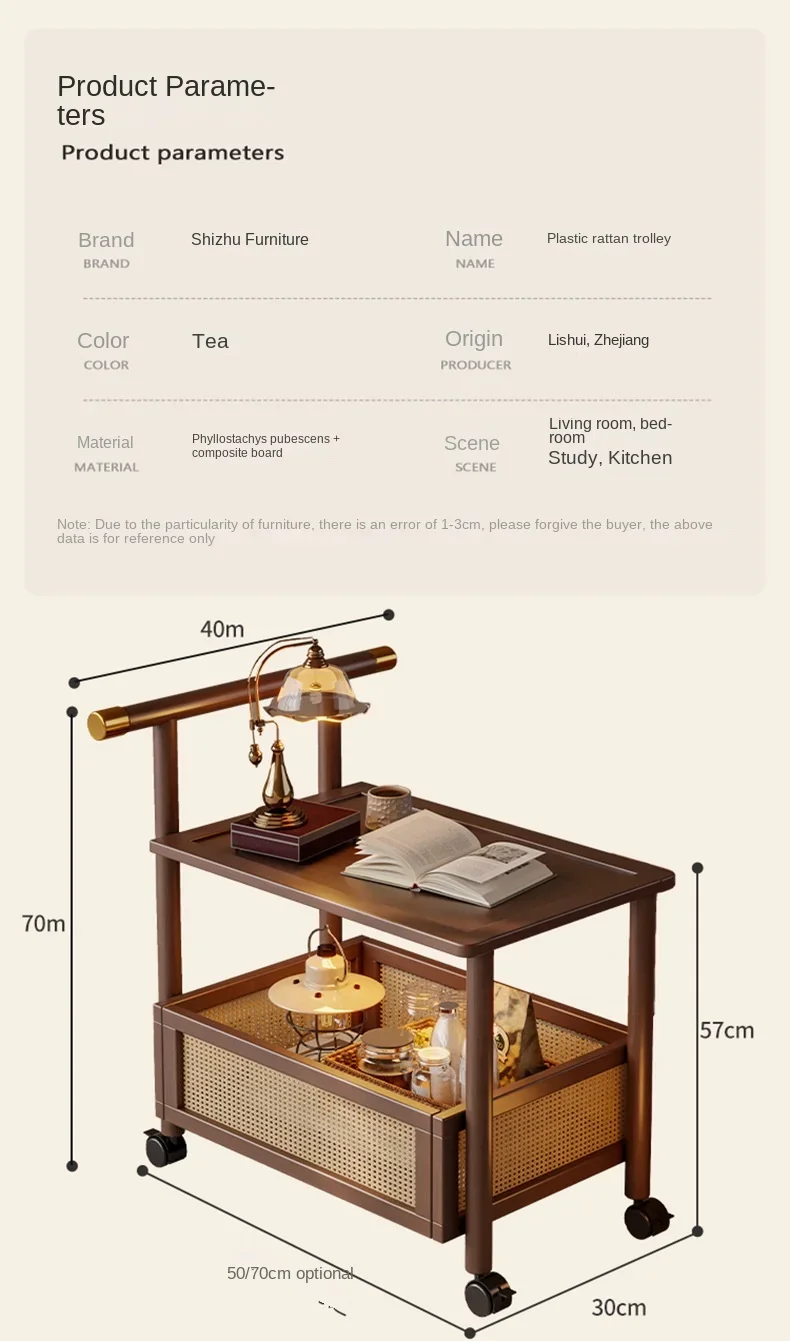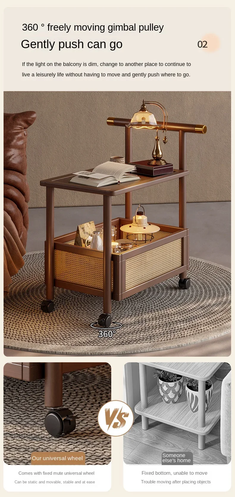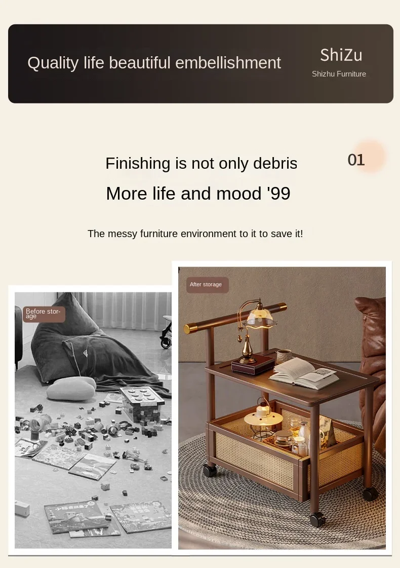 Sofa Edge Table Movable Living Room With Wheels Side Cabinet Antique Style Small Push Lathe Head Storage Rack Coffee Table