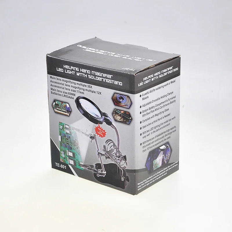 3.5X 12X Helping Hand portable LED Magnifier with Light, Soldering Stand MG16126-A for solder work magnifying glass