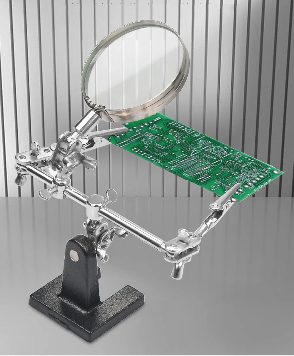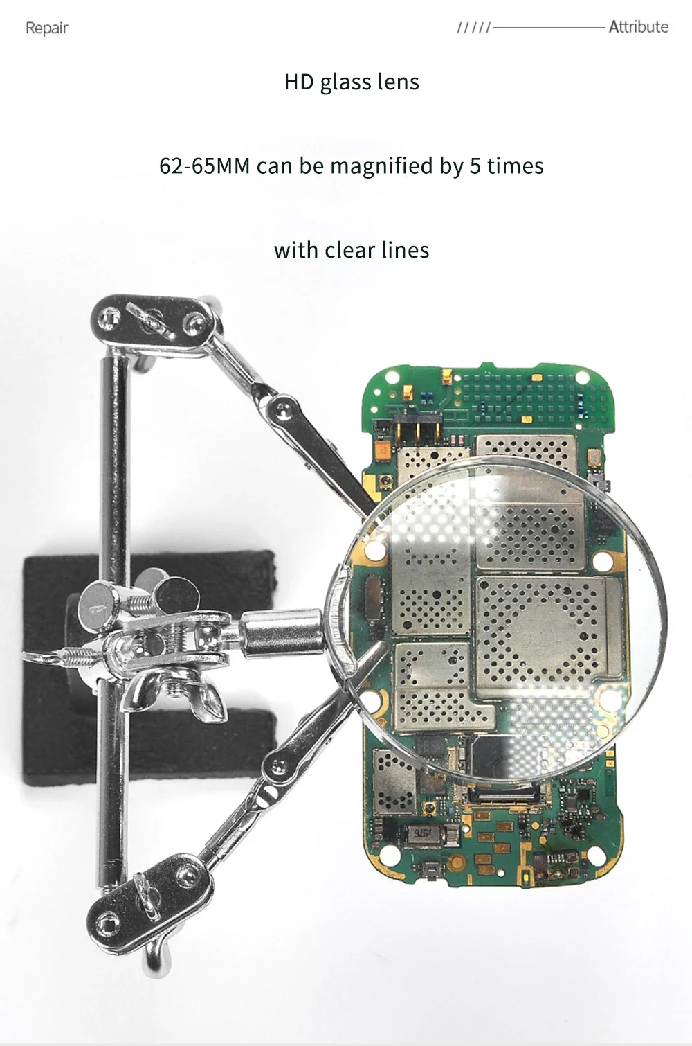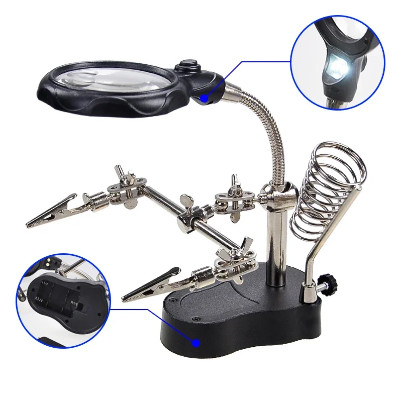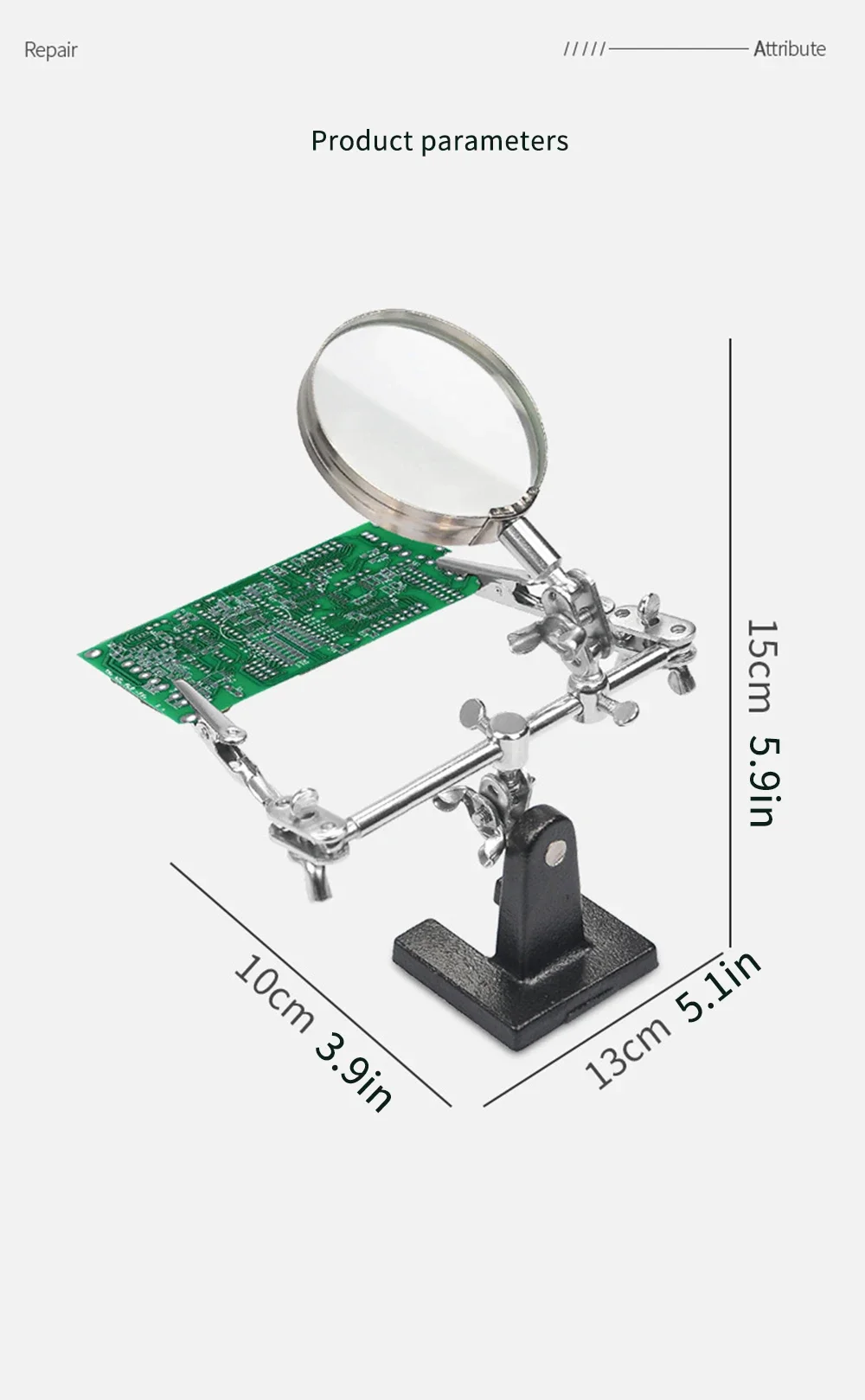 Soldering Iron Station Stand With Welding Magnifying Glass Clip Clamp Third Hand Helping Desktop Magnifier Soldering Repair Tool