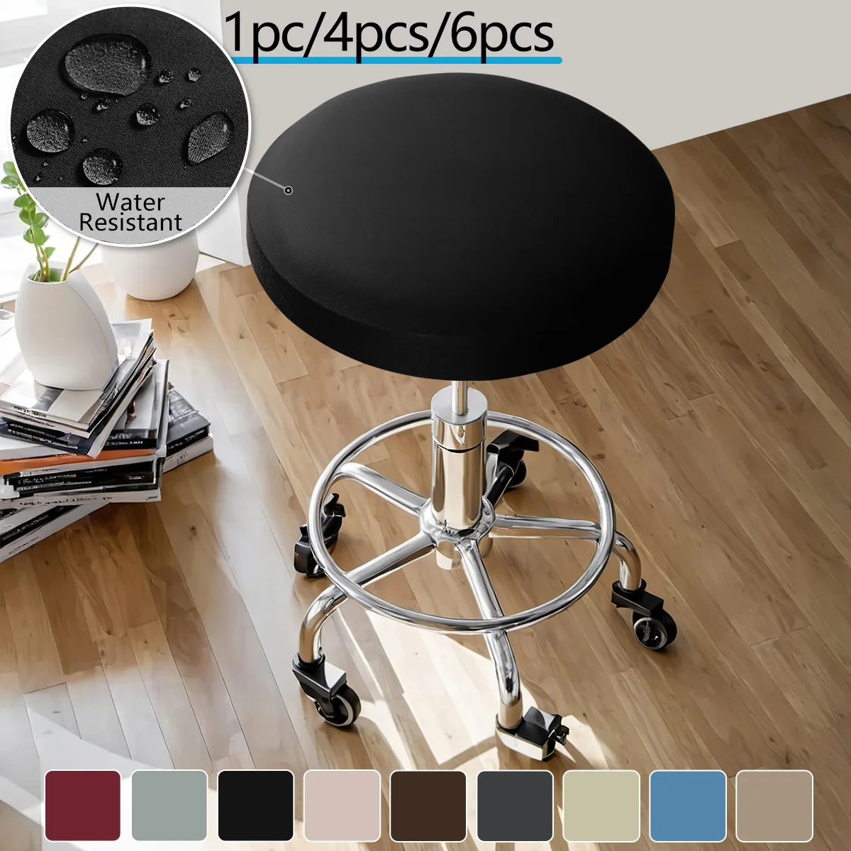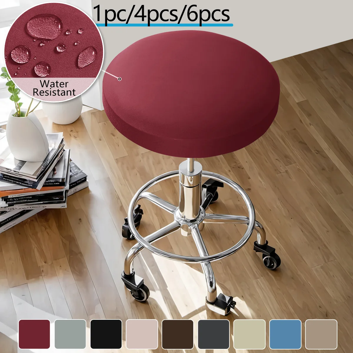 Solid Color Elastic Waterproof Round Stool Covers Bar Counter Lifting Chair Cover Anti Dirty Dining Stool Covers 1pc/4pcs/6pcs