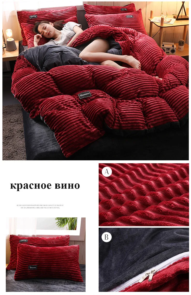 Solid Color Velvet Duvet Cover for Bed Winter Warmth Thick Bedding Set Quilt Cover Twin Queen King Duvet Cover With Pillowcase