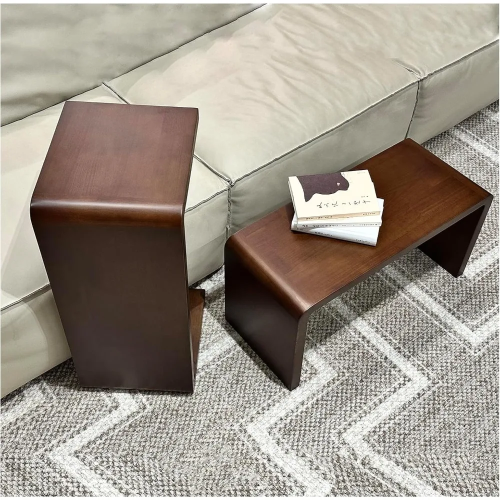 Solid Wood End Table for Couch, C Shaped Mini Sofa Side Table for Small Narrow Spaces, Wooden Nightstand