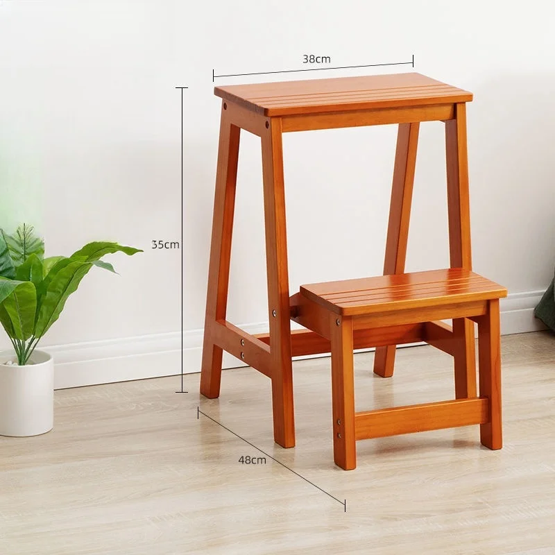 Solid Wood Folding Ladder Stool Household Two-step Climbing Stool Dual-use Indoor Multifunctional Step Ladder Stool