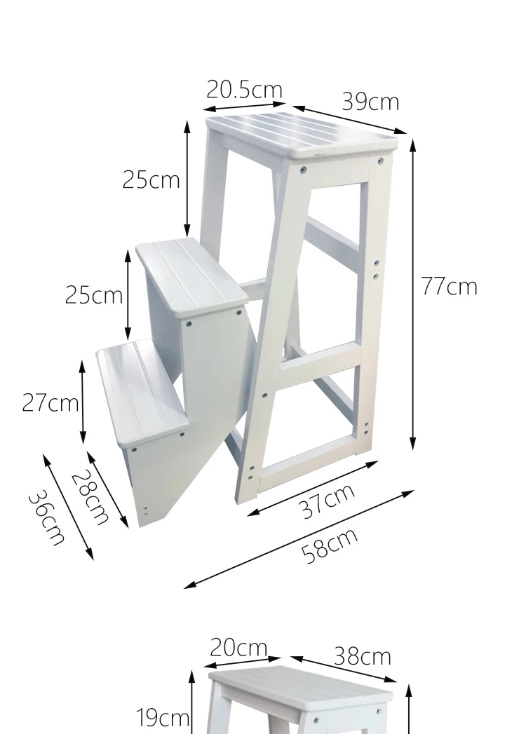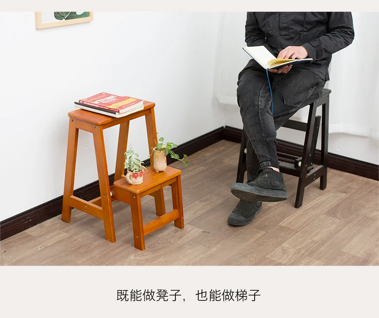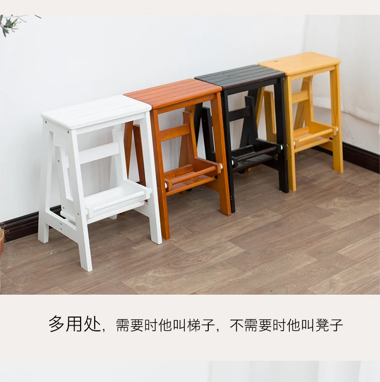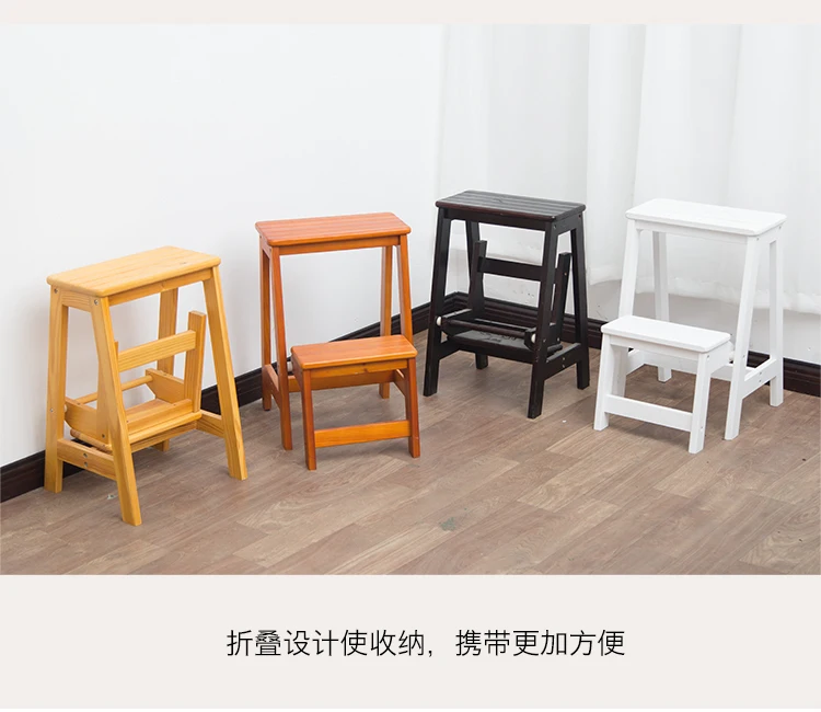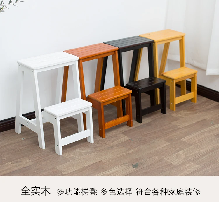 Solid wood folding step stool stair climbing two or three-step step bench household dual-purpose multifunctional creative small