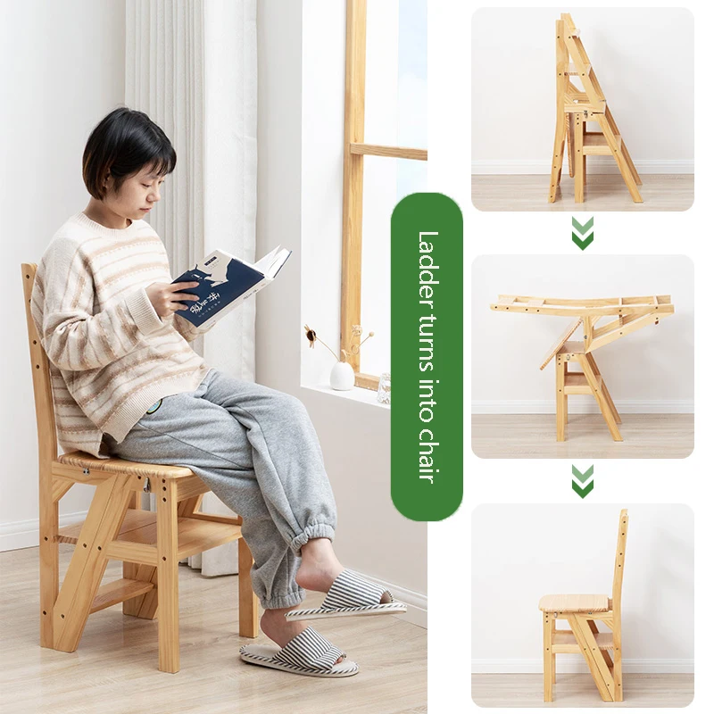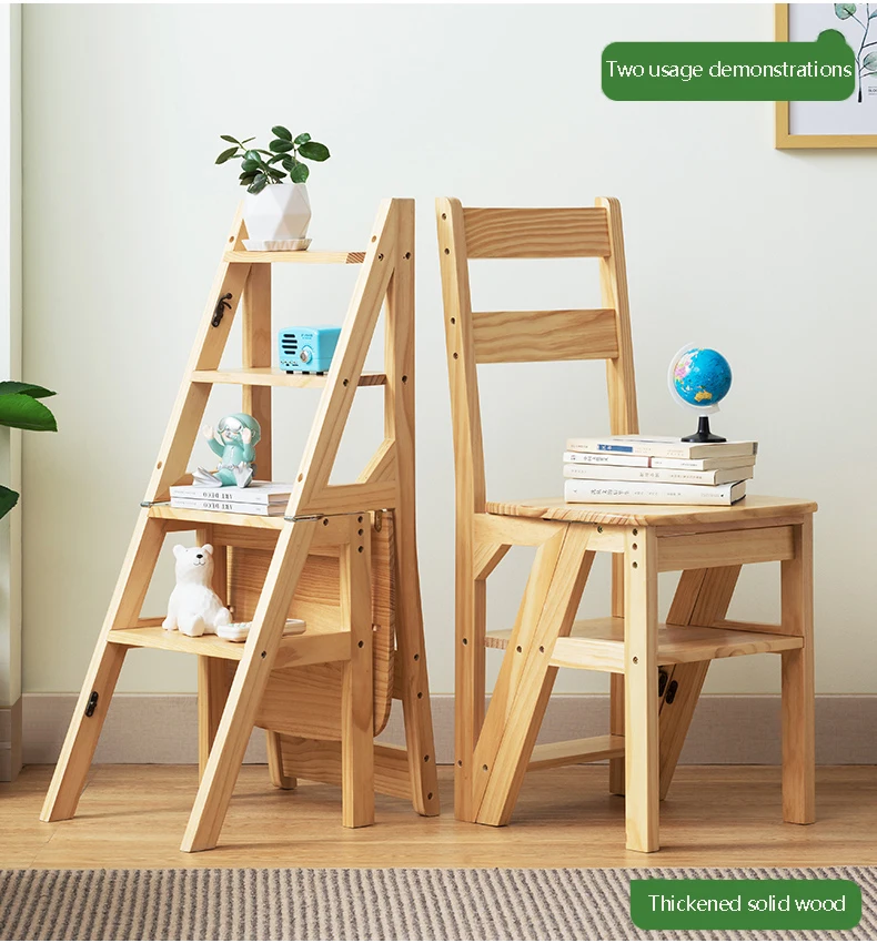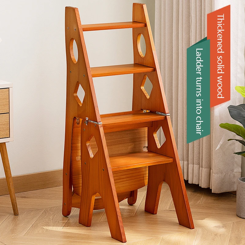 Solid Wood Ladder Chair Household Ladder Chair Folding Dual-use Ladder Stool Indoor Climbing Pedal Stair Multi-function