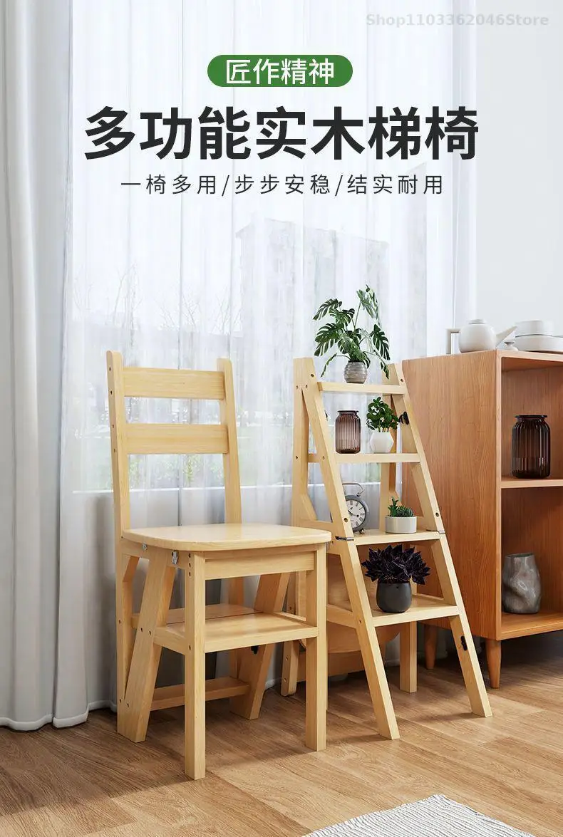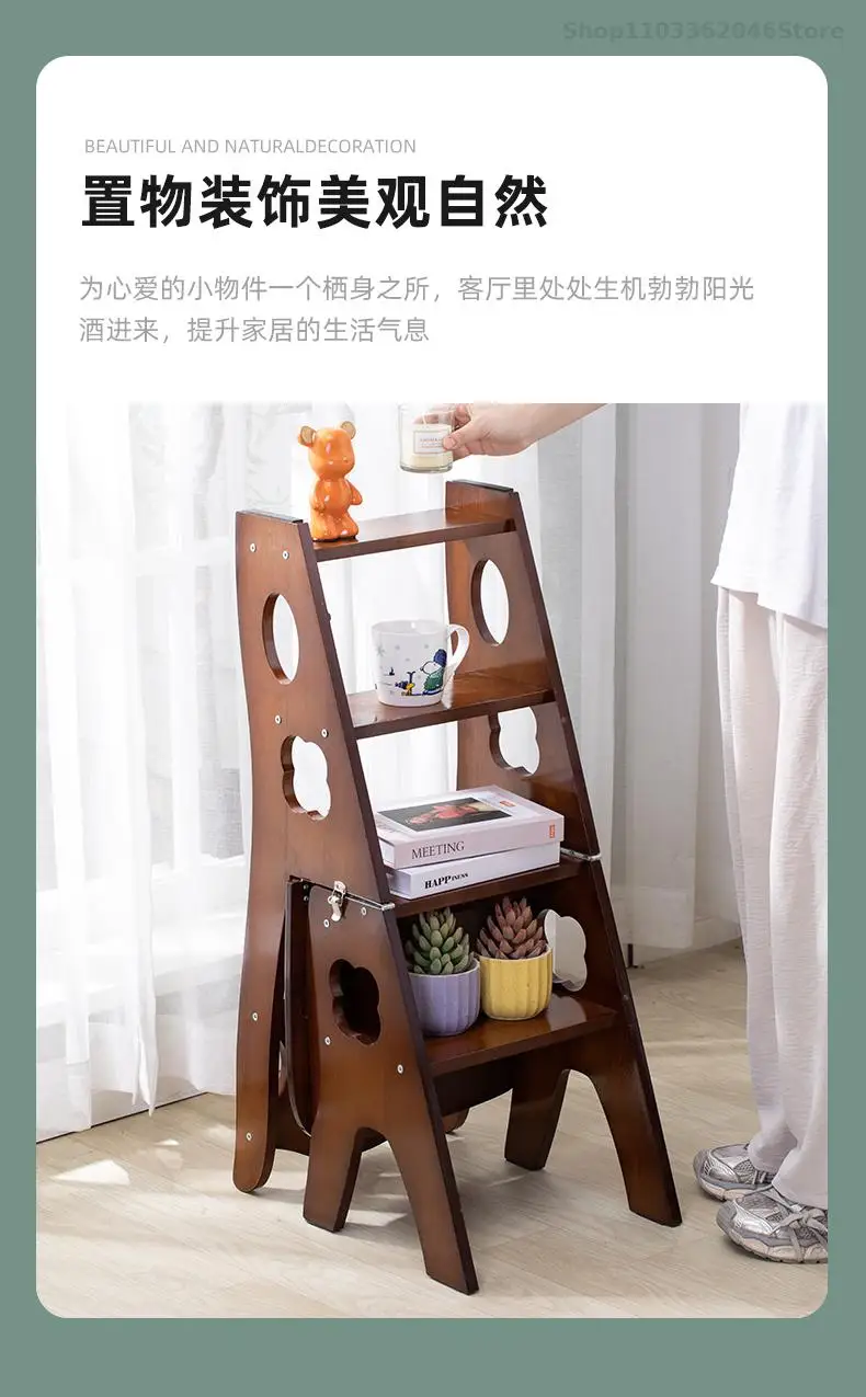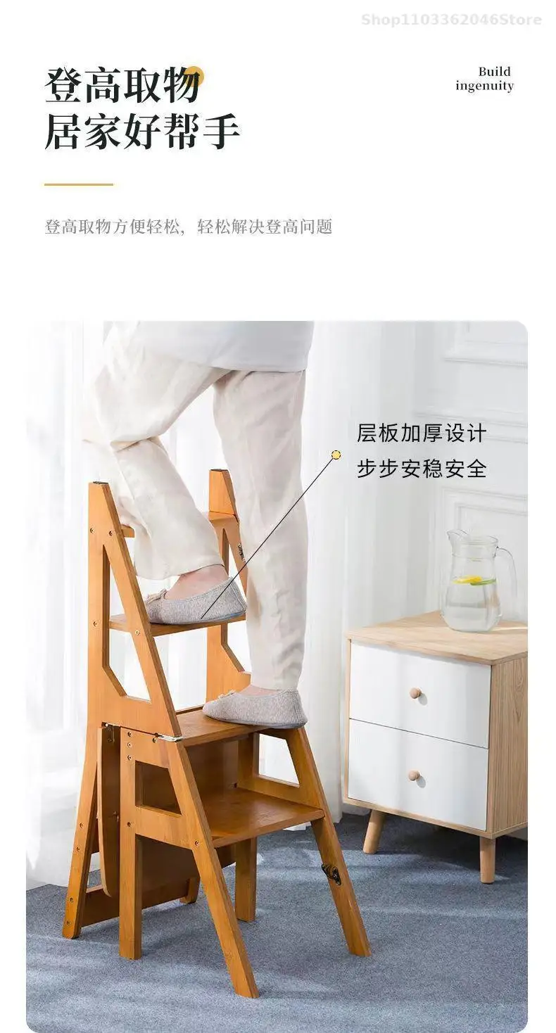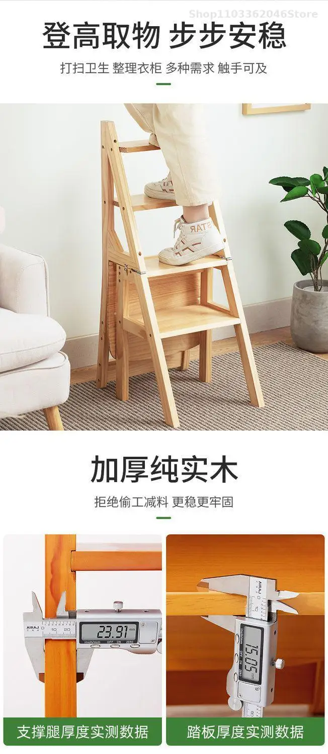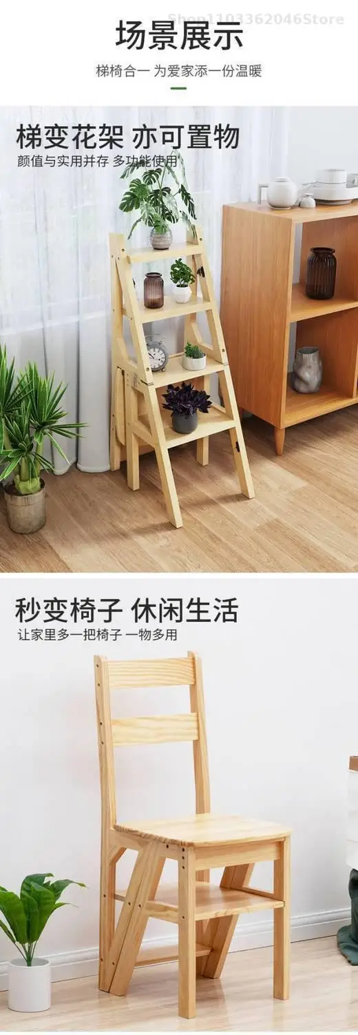 Solid Wooden Ladder Stool Thickened Multi-functional Folding Ladder Chair Indoor Climbing Ladder Chair Dual Pedal Stair Stool