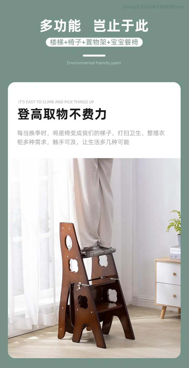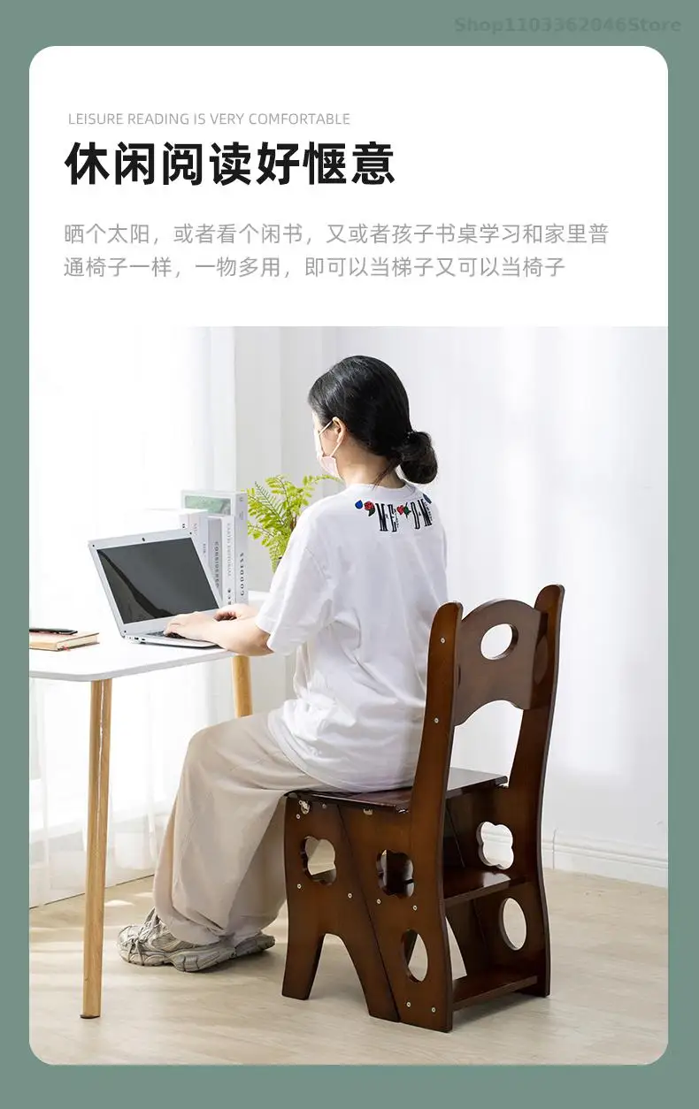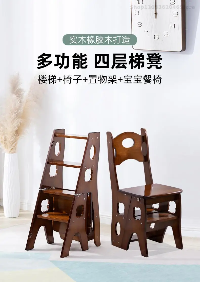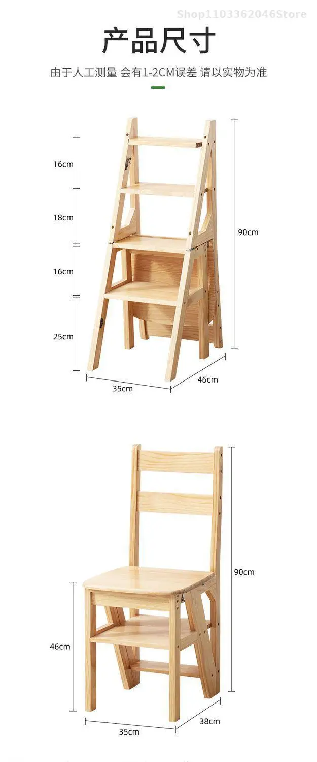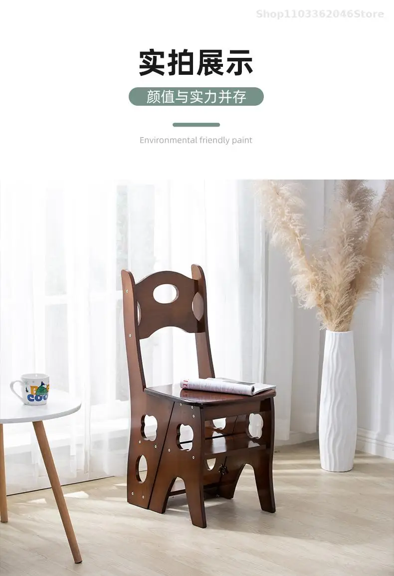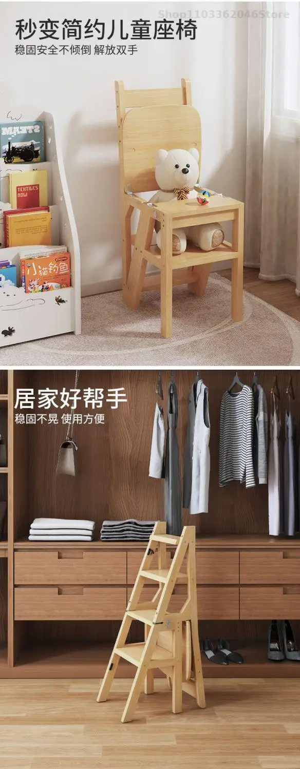 Solid Wooden Ladder Stool Thickened Multi-functional Folding Ladder Chair Indoor Climbing Ladder Chair Dual Pedal Stair Stool