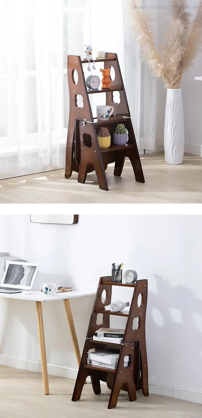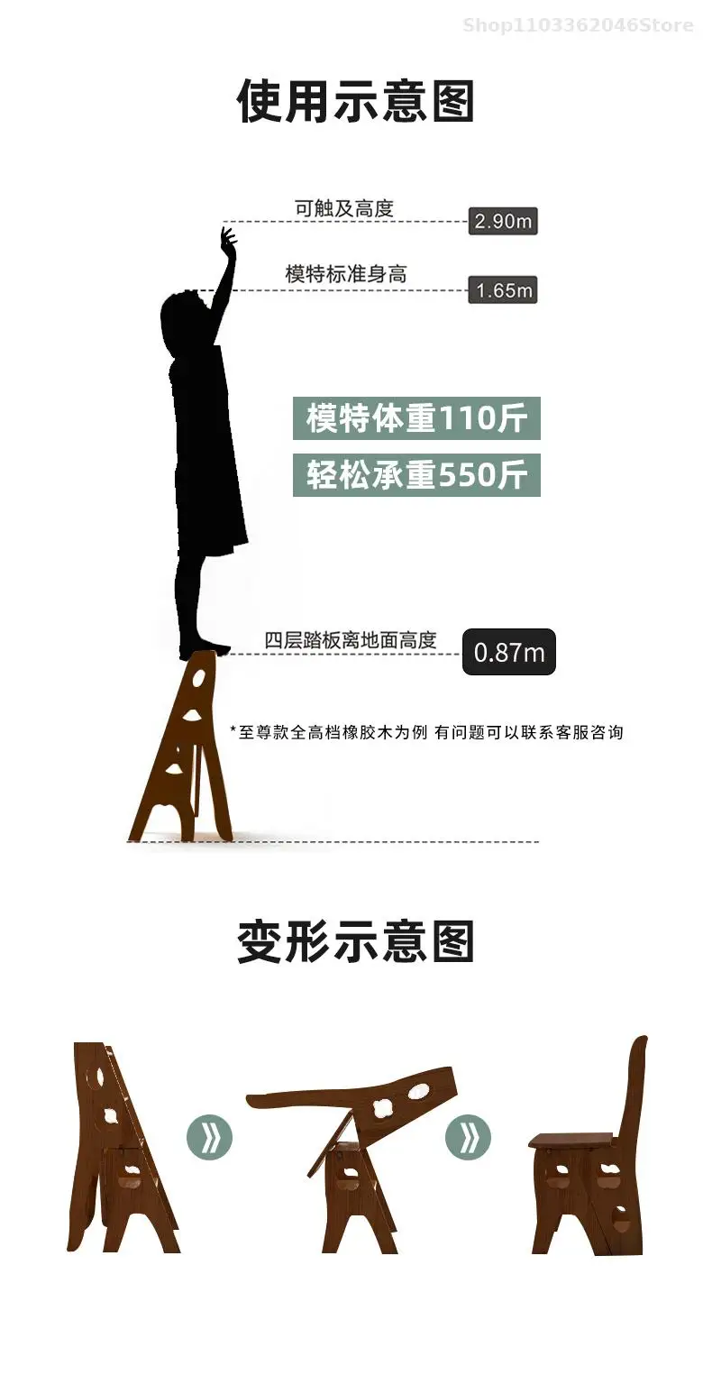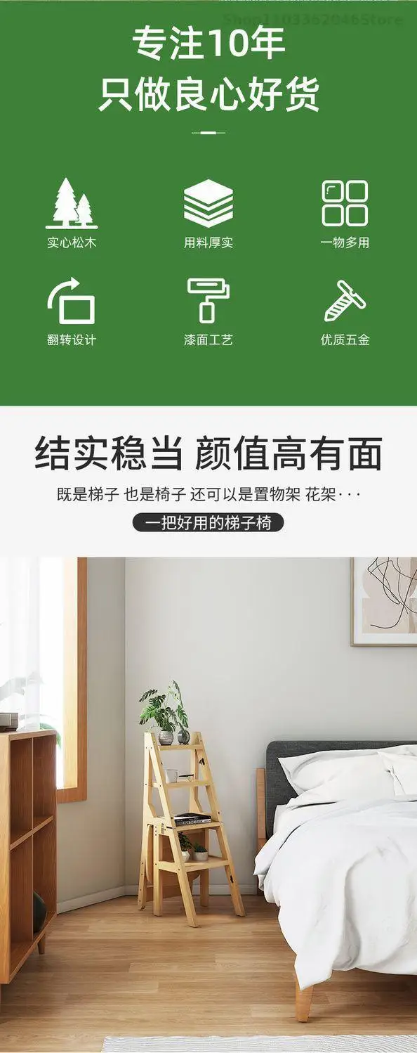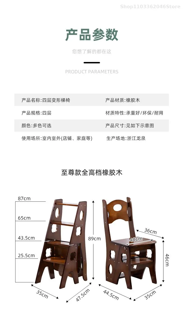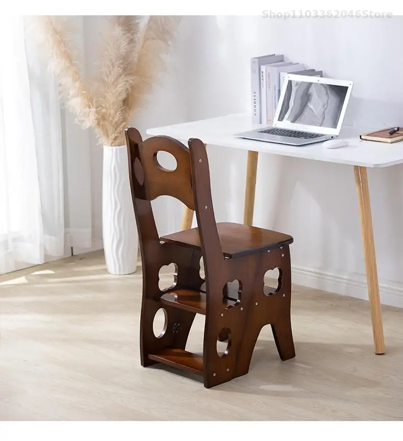 Solid Wooden Ladder Stool Thickened Multi-functional Folding Ladder Chair Indoor Climbing Ladder Chair Dual Pedal Stair Stool
