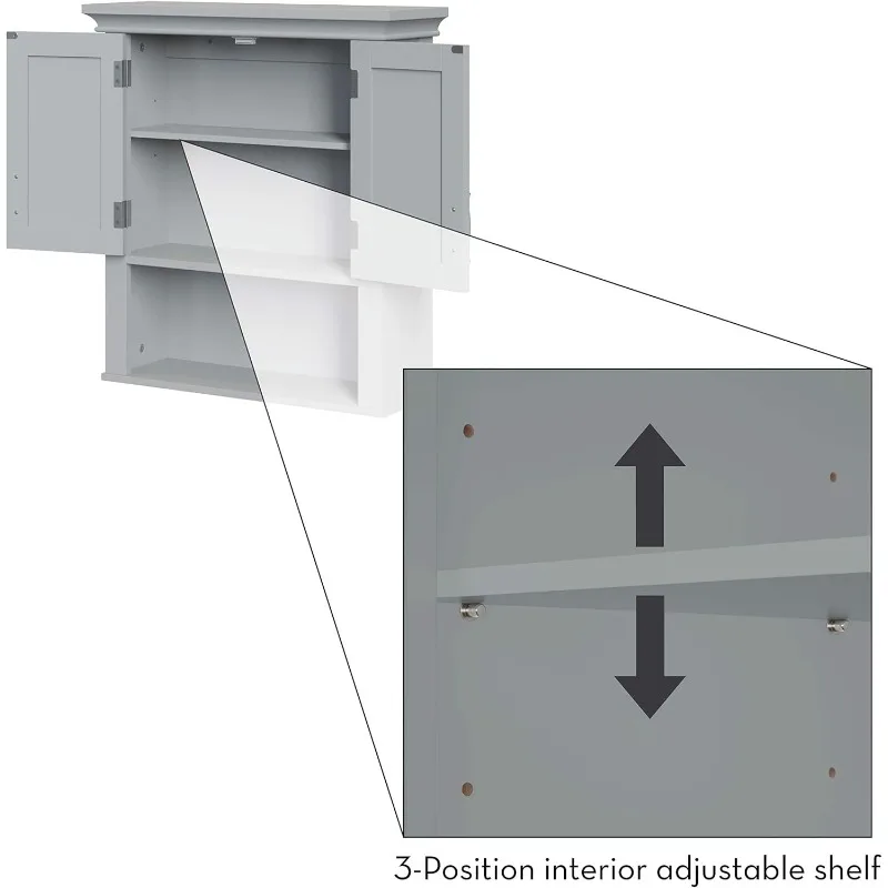 Somerset Two-Door Bathroom and Laundry Wall Mount Storage Medicine Cabinet with Open and Adjustable Shelf