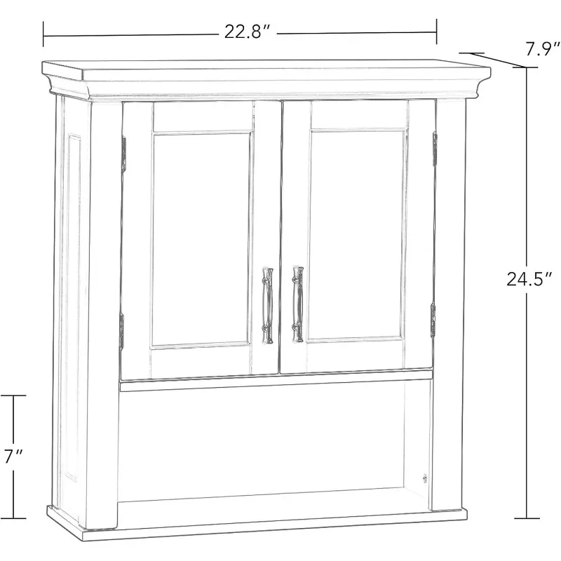 - ASSEMBLED SIZE: 22.8″ W x 7.9″ D x 24.5″ H. This product holds up to 25lbs per shelf for a total weight of 75lbs. Our bathroom wall cabinet lets you tuck toiletries out of sight behind doors, while the open bathroom shelf is ideal for showing off decorative accents. It’s the perfect balance of concealed and open wall cabinet storage.