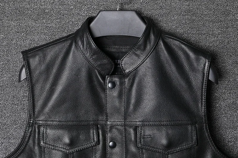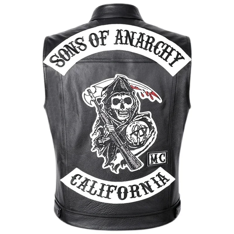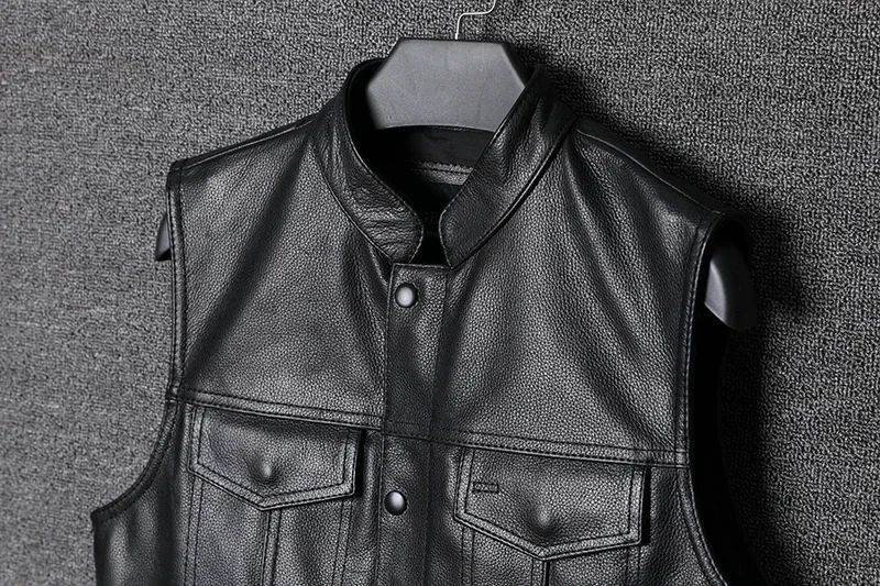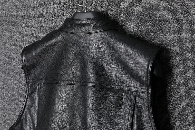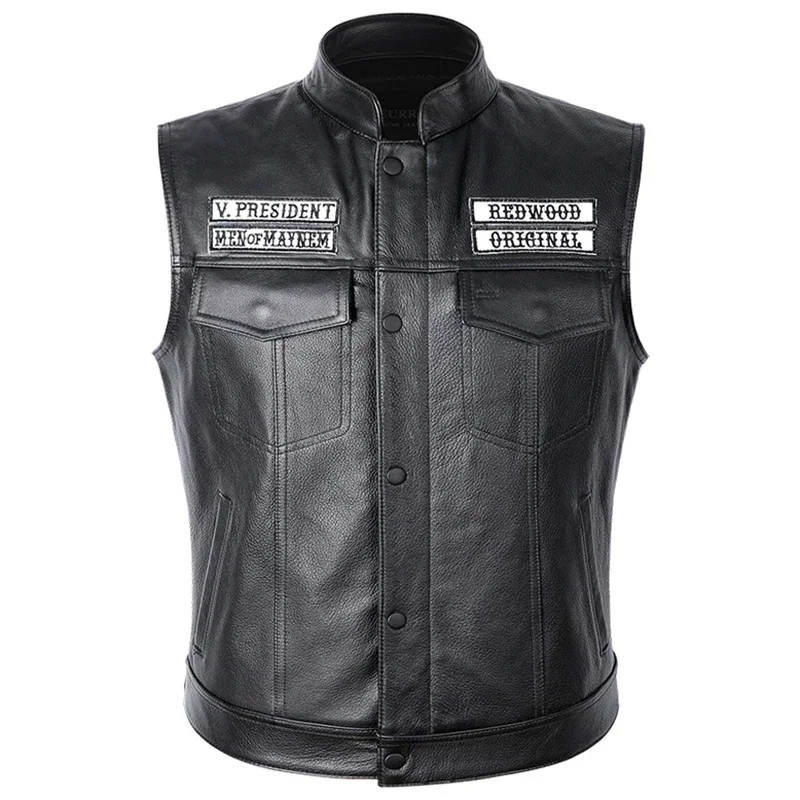 Sons of Anarchy Classical Motorcycle Biker Leather Vest Men Genuine Leather Sleeveless Jackets REAL Cowhide Motorcade Vest 6XL