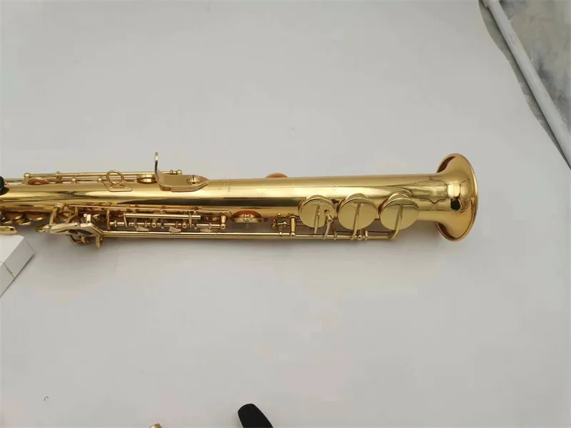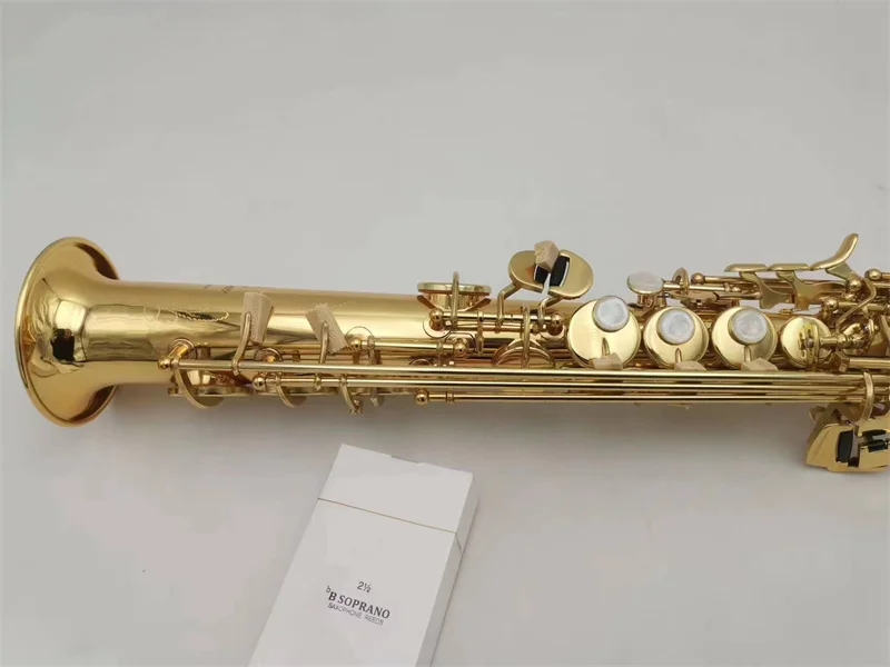 Soprano Saxophone B-Flat Straight Gold Lacquered Body musical instrument professional with Case Accessories