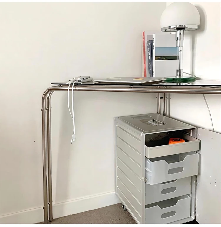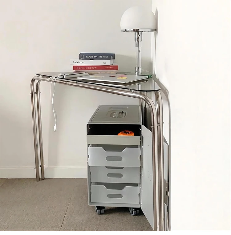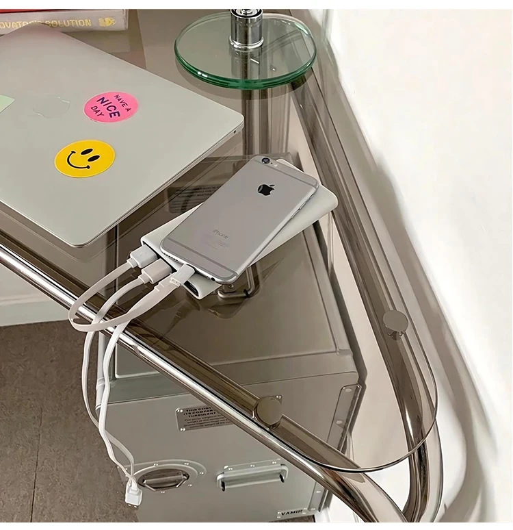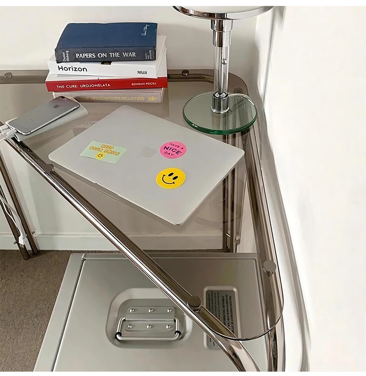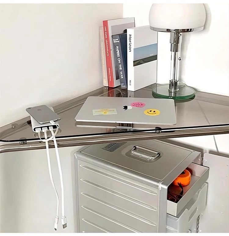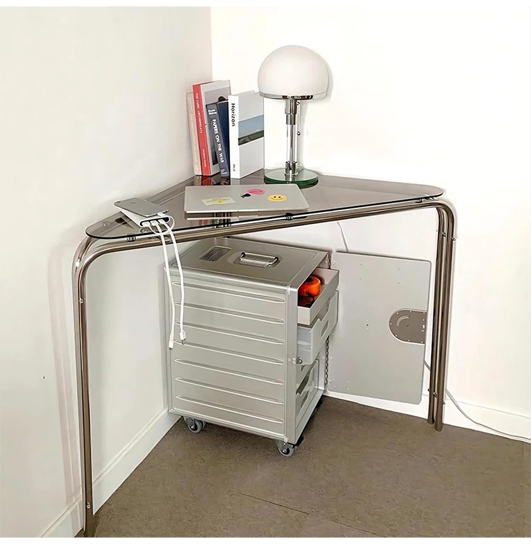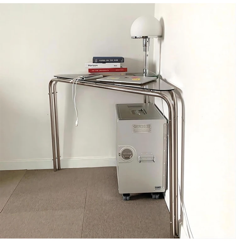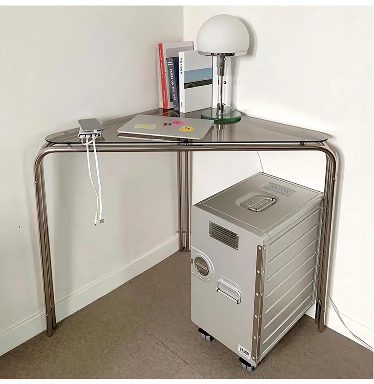 South Korea Ins Wind Triangle Corner Desk Stainless Steel Small Apartment Computer Desk Practical Corner Glass Table