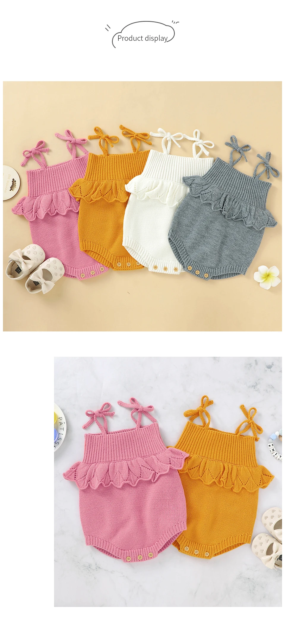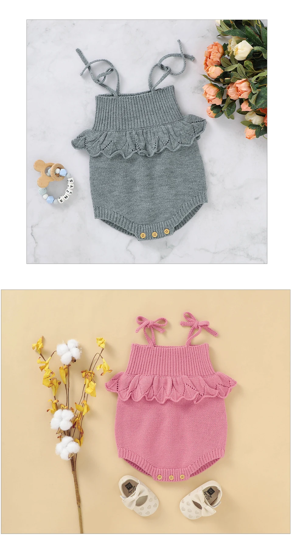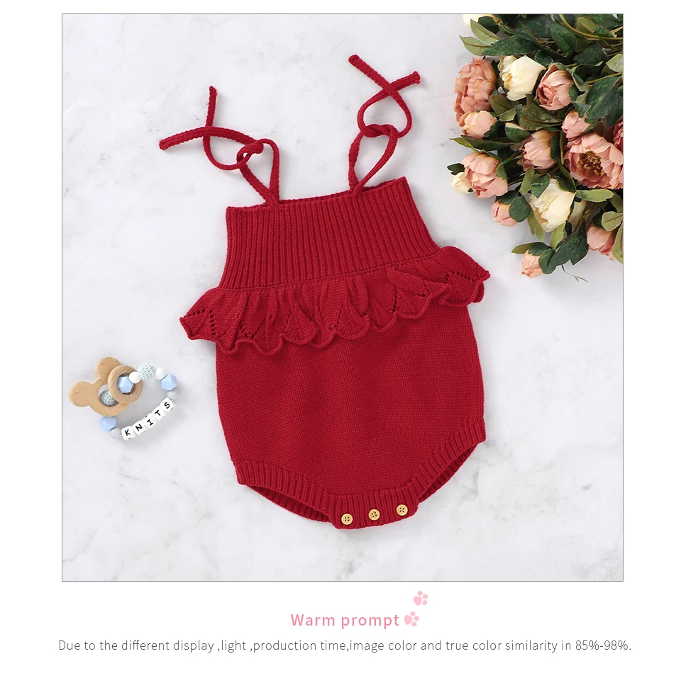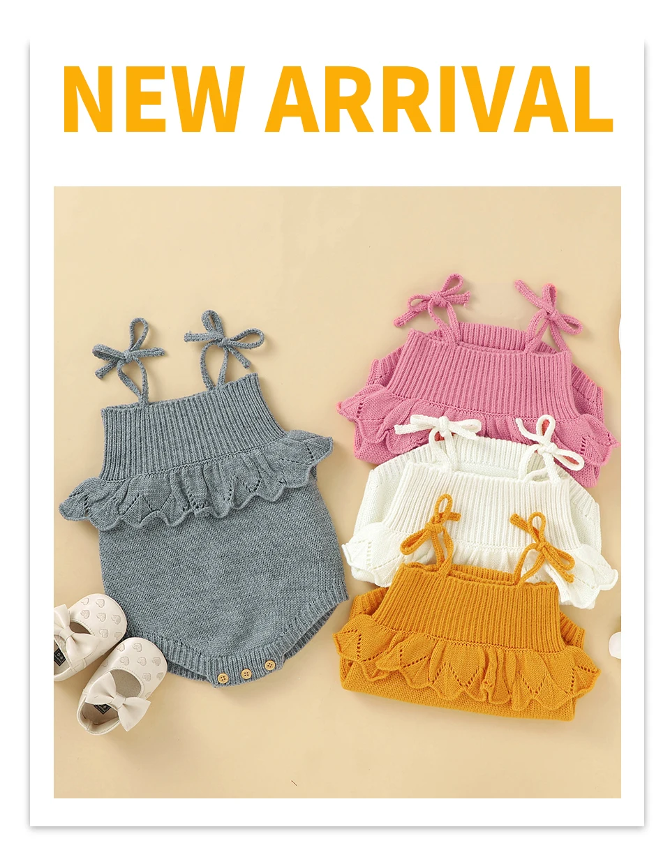 Spaghetti Straps Sleeveless Baby Girls Summer Rompers One-piece Jumpsuit Knit Acrylic Newborn Infant Bodysuit Playsuit Sleepsuit