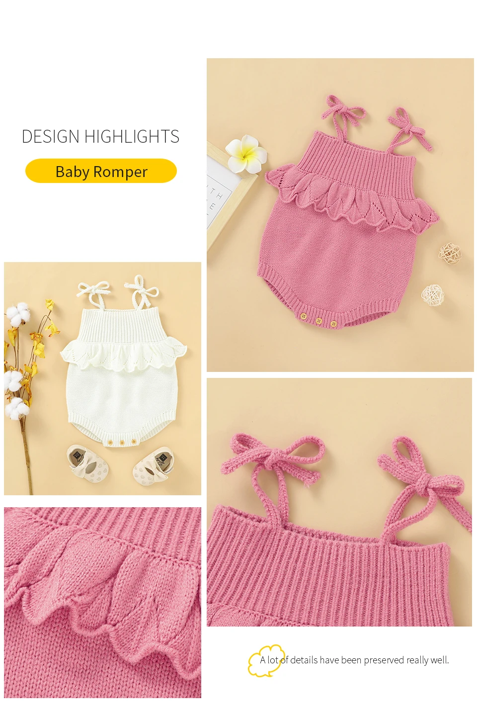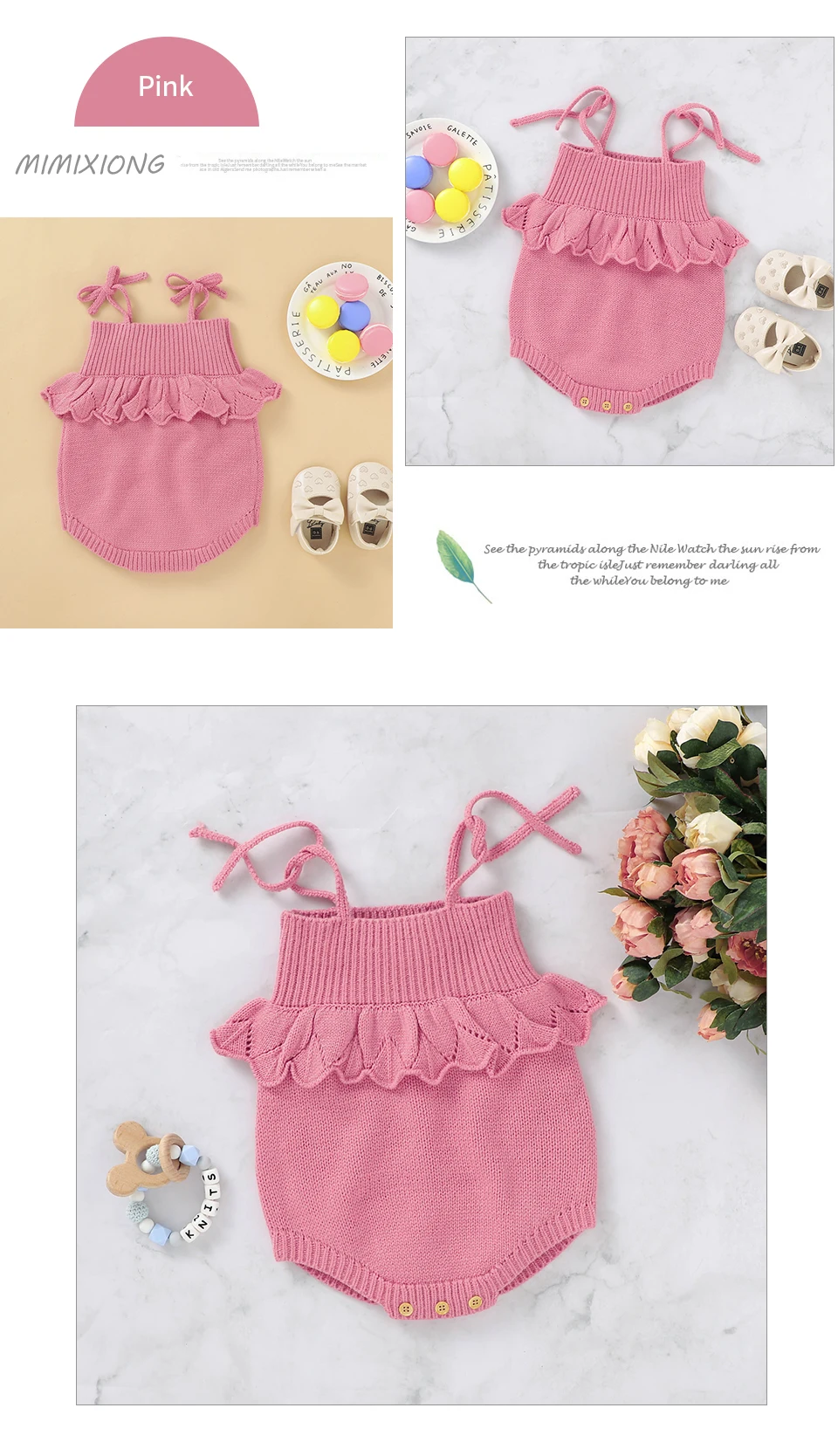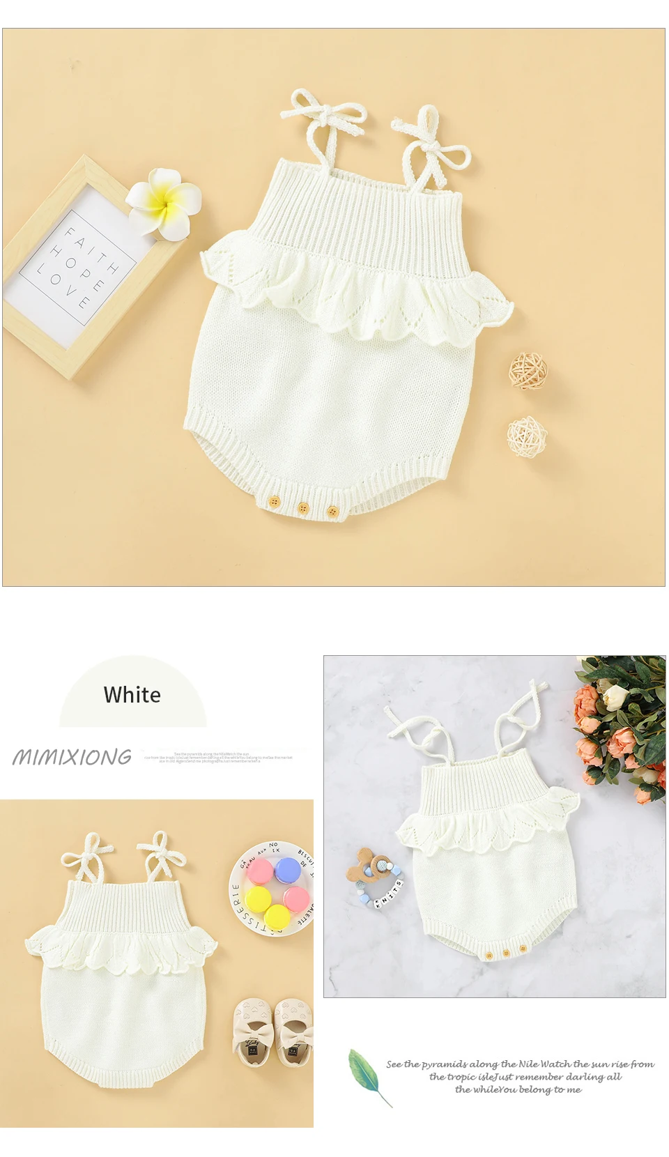 Spaghetti Straps Sleeveless Baby Girls Summer Rompers One-piece Jumpsuit Knit Acrylic Newborn Infant Bodysuit Playsuit Sleepsuit