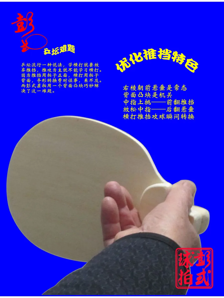 There is a popular saying in table tennis that to learn horizontal playing, one must give up pushing and attacking, and cannot learn horizontal playing Because pushing is done on the front of the racket and hitting horizontally is done on the back of the racket, changing the hand shape is time-consuming and time-consuming. And Peng style direct shooting cleverly solves this problem with a back protrusion.